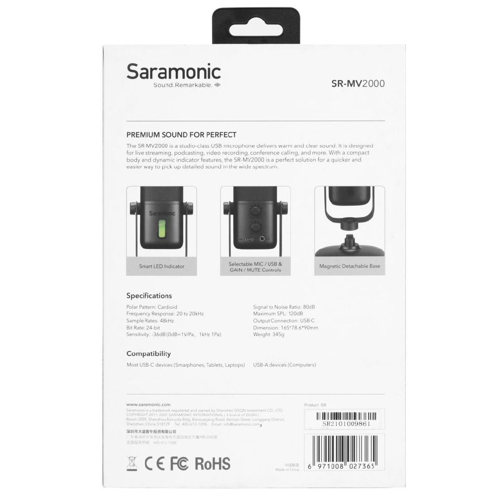SR-MV2000は、カーディオイド特性のスタジオクラスのUSBマイクロホンです。