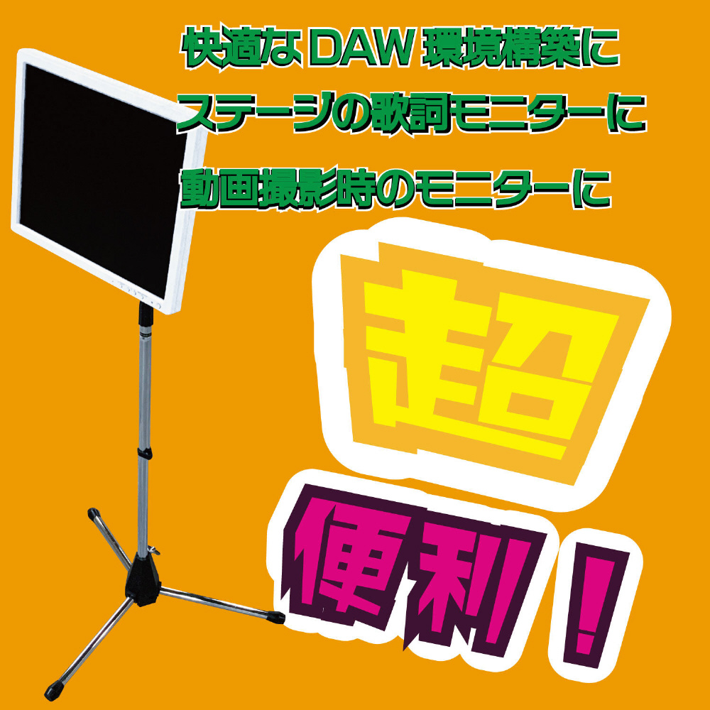ご自宅のDAW環境の充実に一役買う他、マイクスタンドを常備されているライブハウスやホールなどの環境でのステージモニターのスタンドや、撮影用のモニターのスタンドとしてご利用いただくことで、モニター用のスタンドの持ち運びの負担を大幅に減らすことも可能な便利アイテムです。