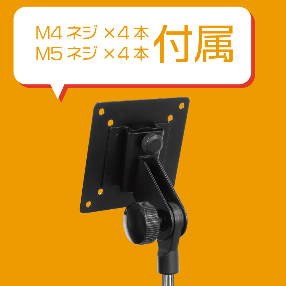 M4ネジX4とM5ネジX4両方を付属し、多くのVESA規格のモニターに対応可能。
