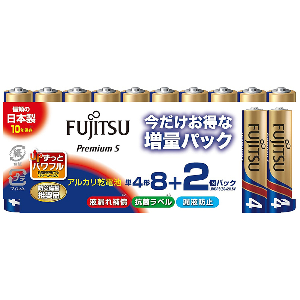 | 商品名 | 富士通アルカリ Premium S 単4(8+2個パック) LR03PS(8S+2) [10本 /アルカリ] |
