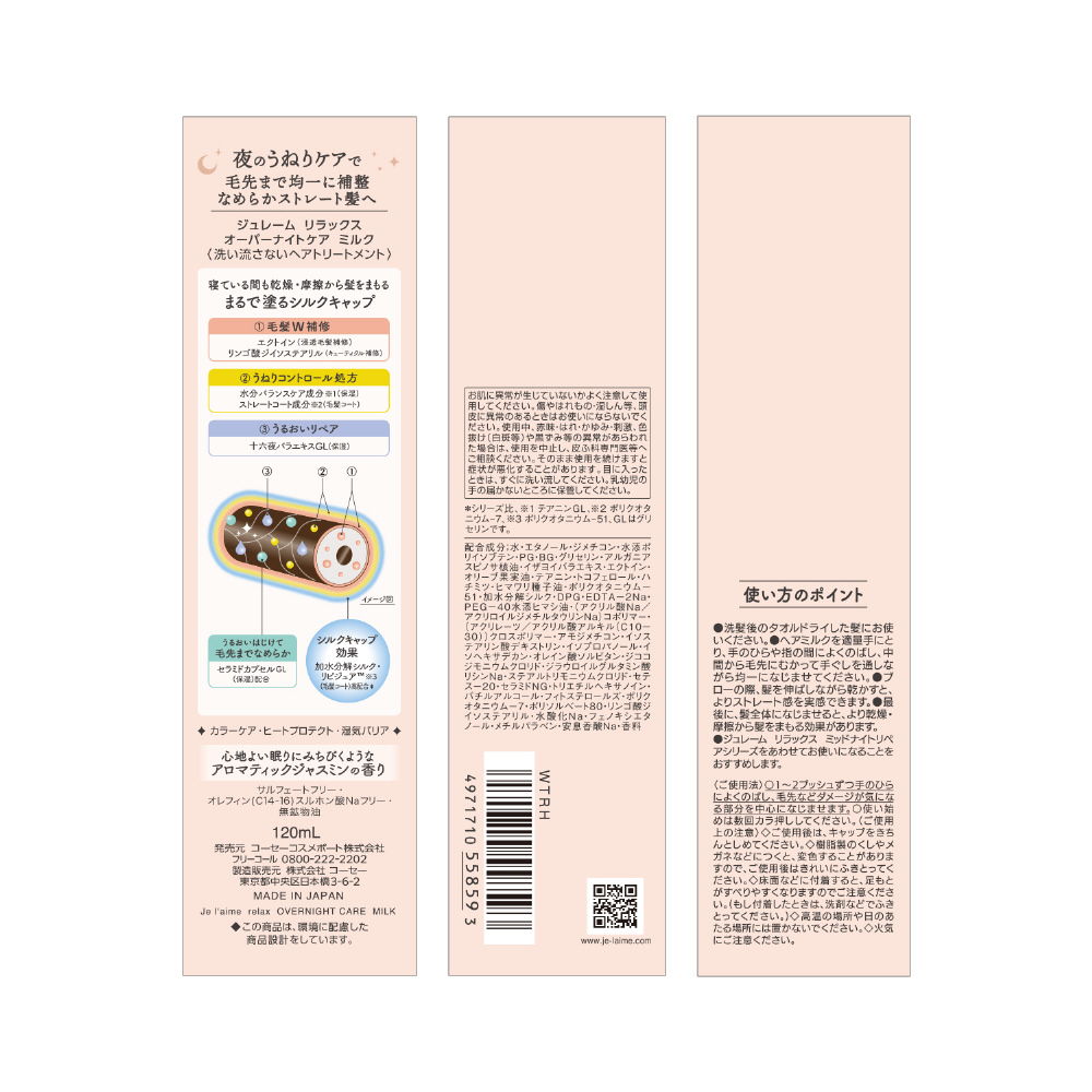 | 商品名 | Je l’aime(ジュレーム)リラックス オーバーナイトケア ミルク 120mL |