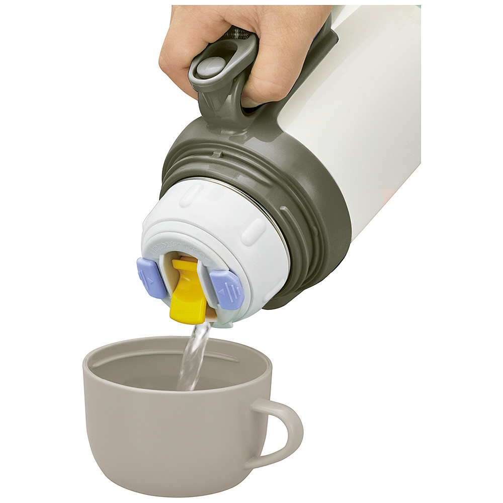 コップと直飲み、どちらもOK!ハンドル付きで持ちやすく、保温・保冷機能も備えています。