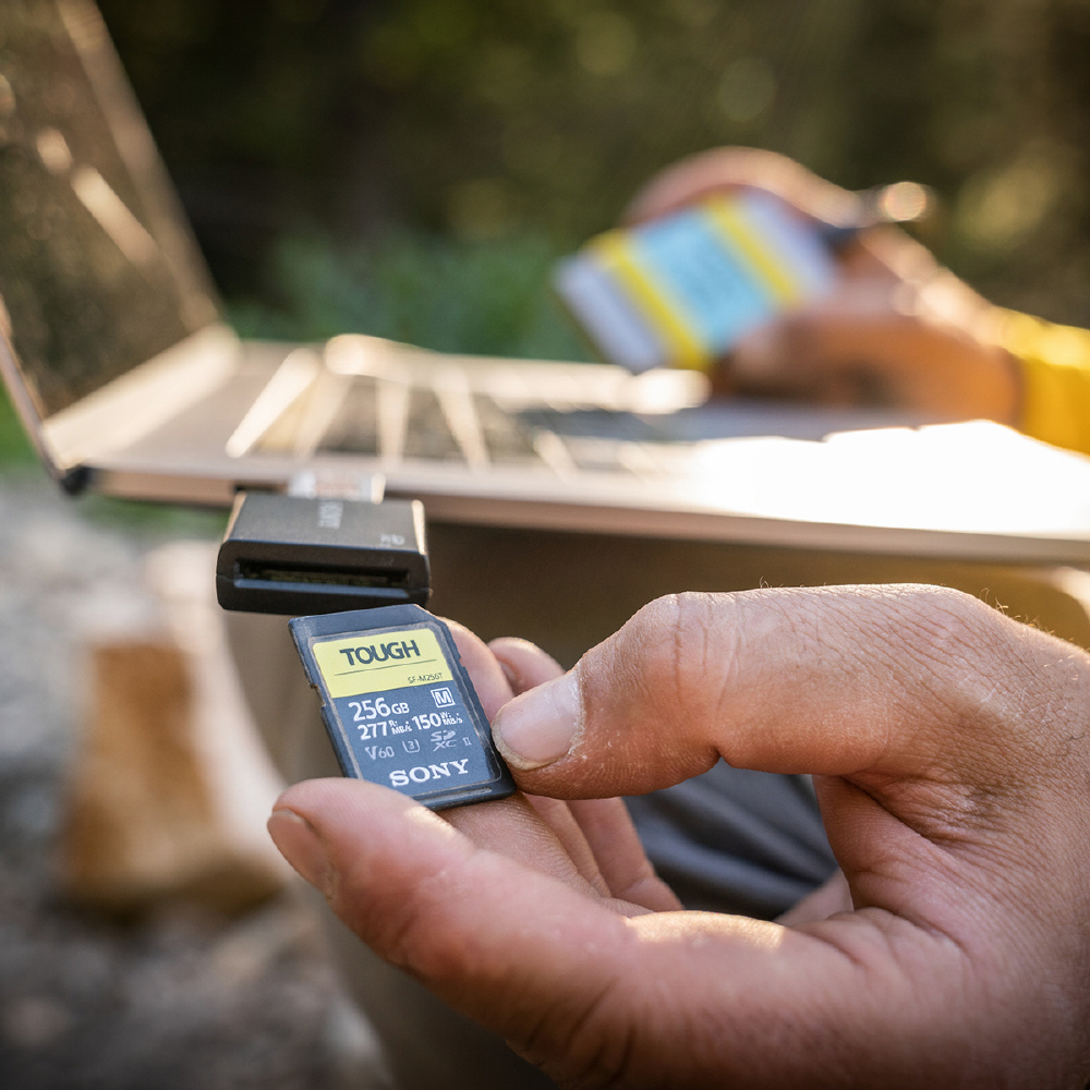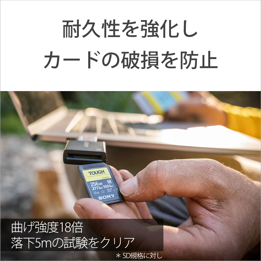 強靭性、防水防塵性に優れたタフ仕様SD。大容量データの高速転送にも最適なSDXC UHSスピードクラス3対応UHS-IIメモリーカード