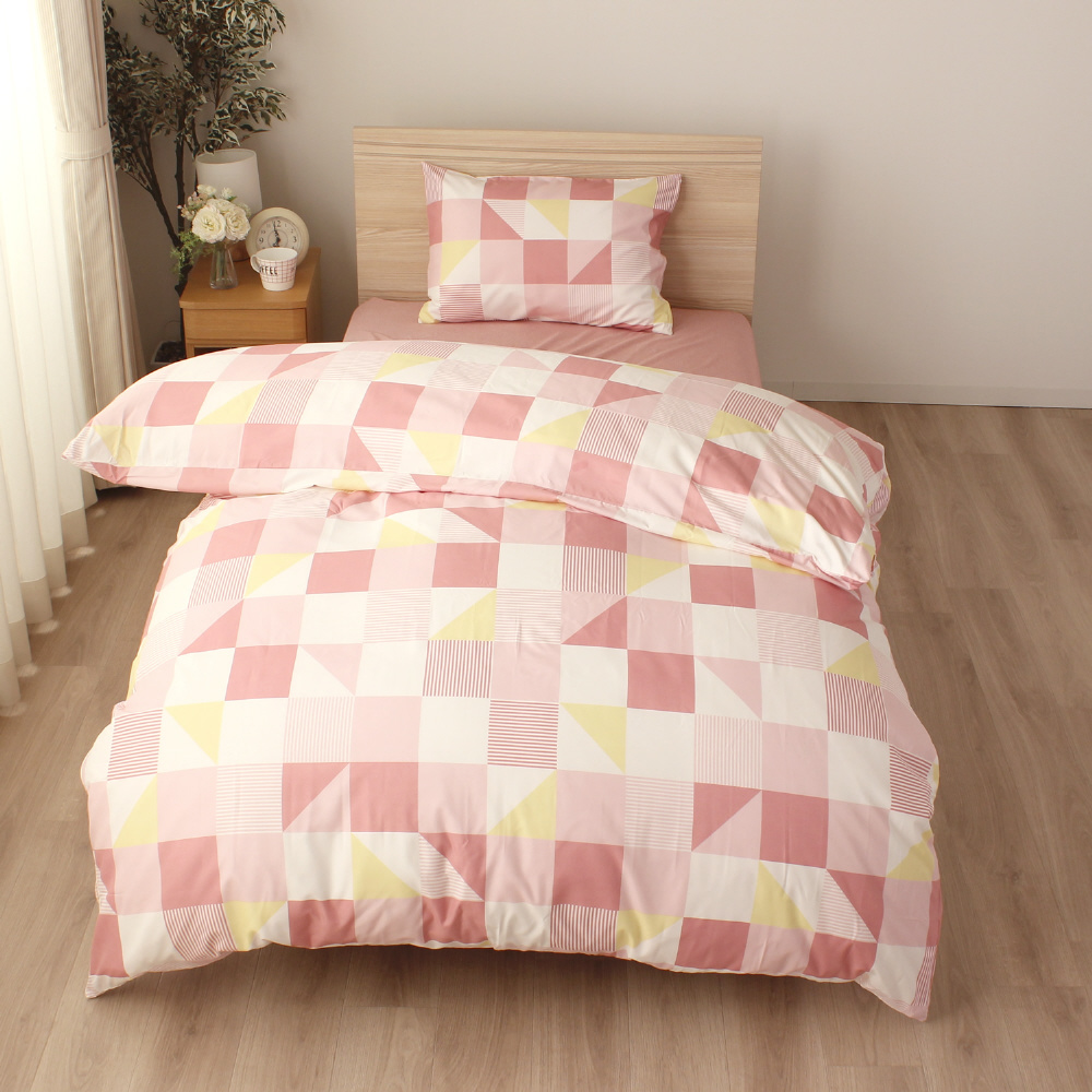 メリーナイト 掛け布団カバー 「スクエア」 ピンク シングルロング 約150×210cm 両サイドファスナー ふとんが入れやすい 洗える 速乾 シワになりにくい FF12115-16 ピンク FF12115-16