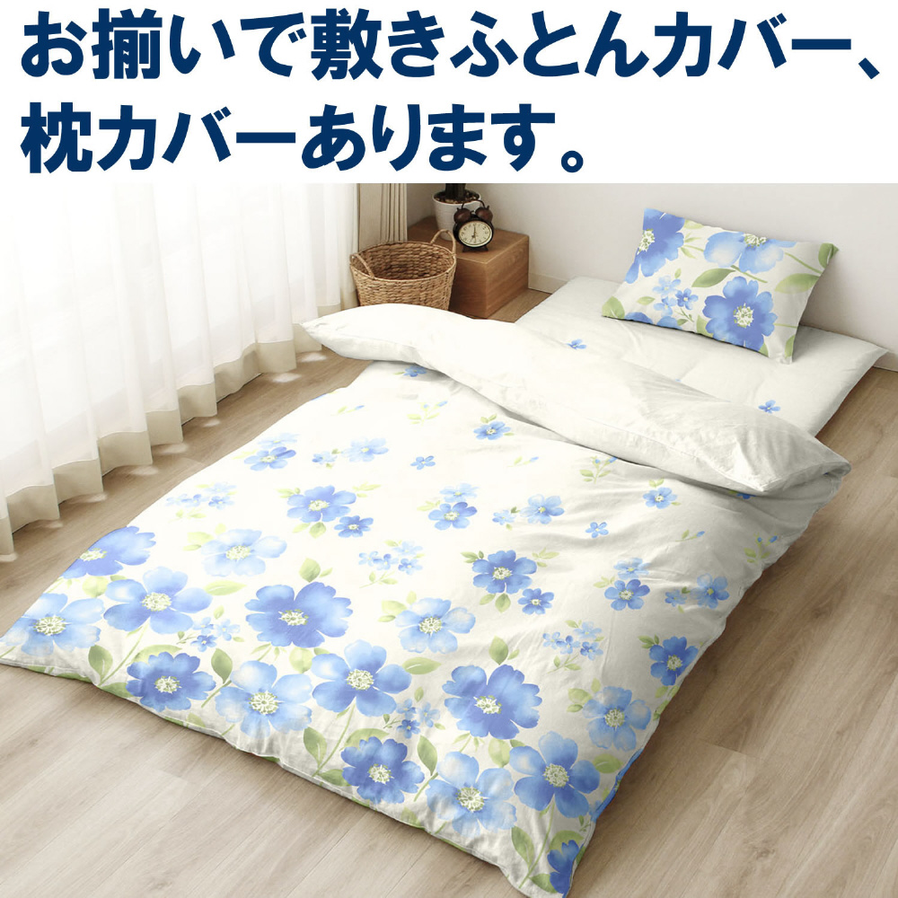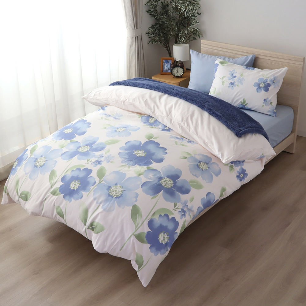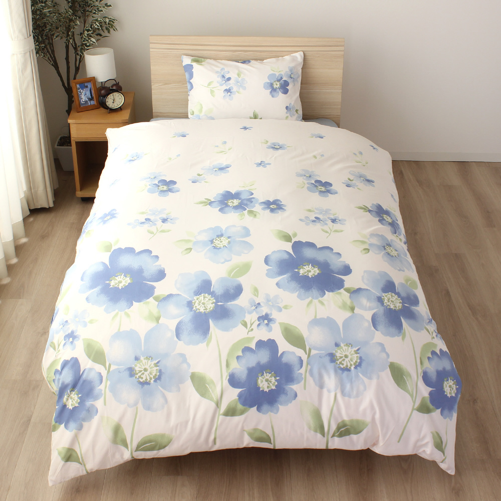 メリーナイト 掛け布団カバー 「水彩フラワー」 ブルー シングルロング 約150×210cm 両サイドファスナー ふとんが入れやすい 洗える シワになりにくい FF12113-76 サックス FF12113-76