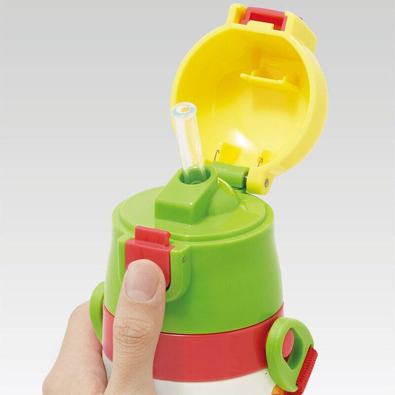 2種類ある飲み口を付け替えて、飲みやすいストロー飲みタイプと、温かい飲み物もOKのコップ飲みタイプで使い分け!