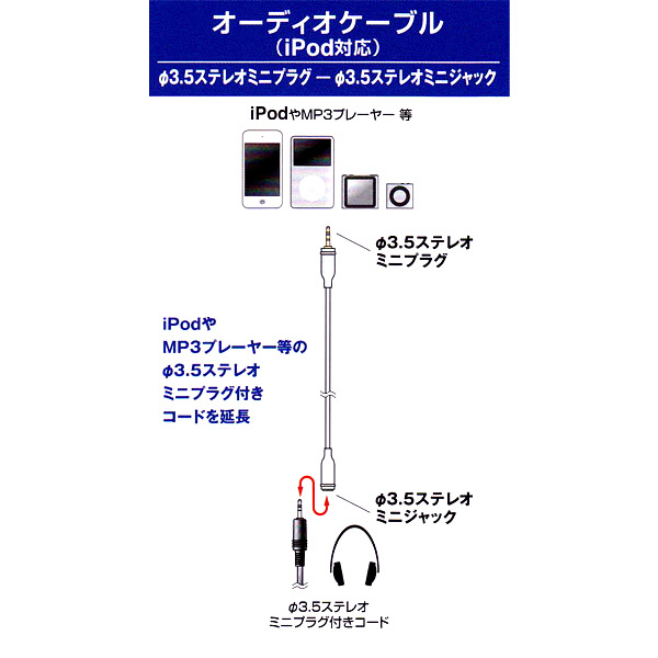 ● φ3.5ステレオミニプラグ付コードを延長する場合などに使います。