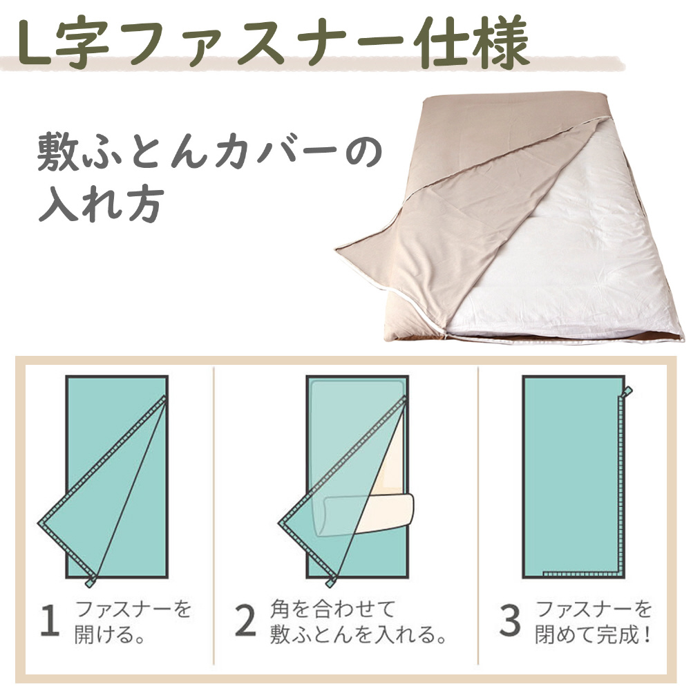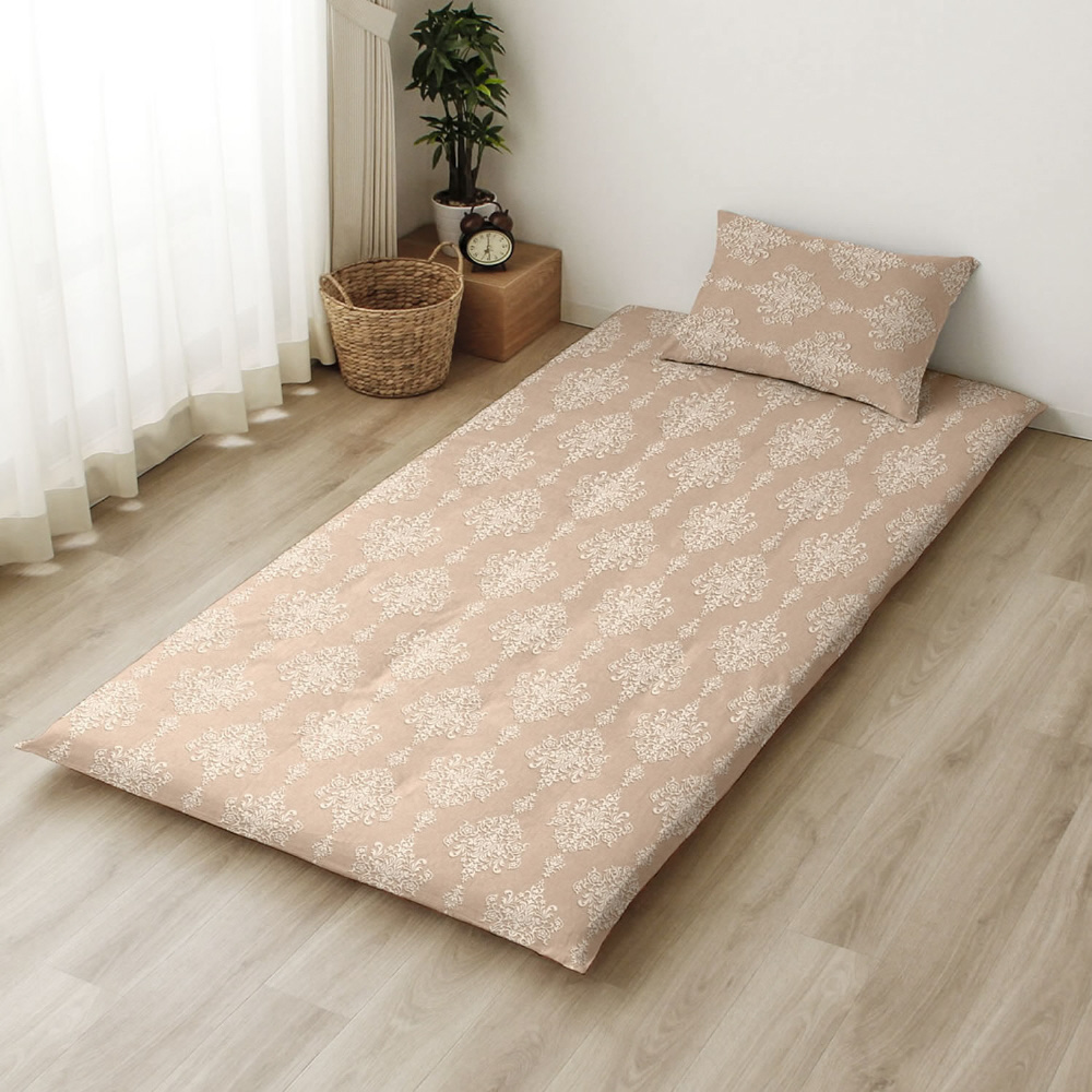 メリーナイト 着脱簡単 L字ファスナー  綿100% 敷布団カバー 「ダマスク」 ベージュ シングルロング 約105×215cm  大きく開く ふとんが入れやすい 洗える 衛生 清潔 オールシーズン FF13117-96  ベージュ