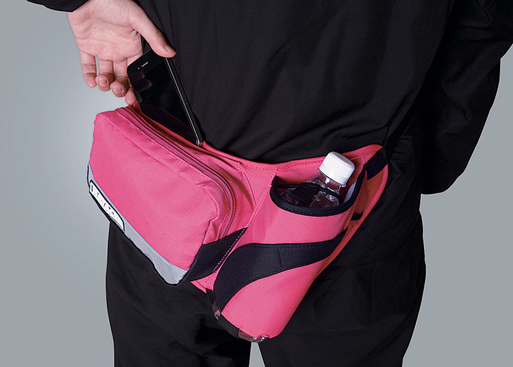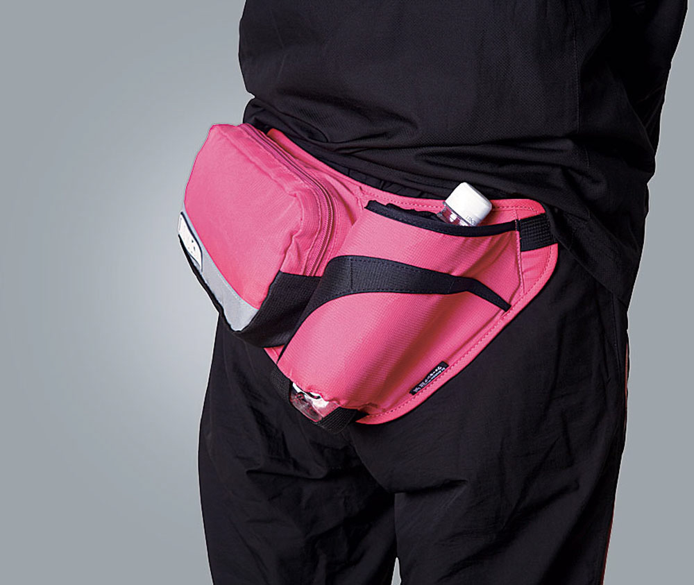 ペットボトルと小物を持ち運べる、ウォーキング時に便利なポーチ。