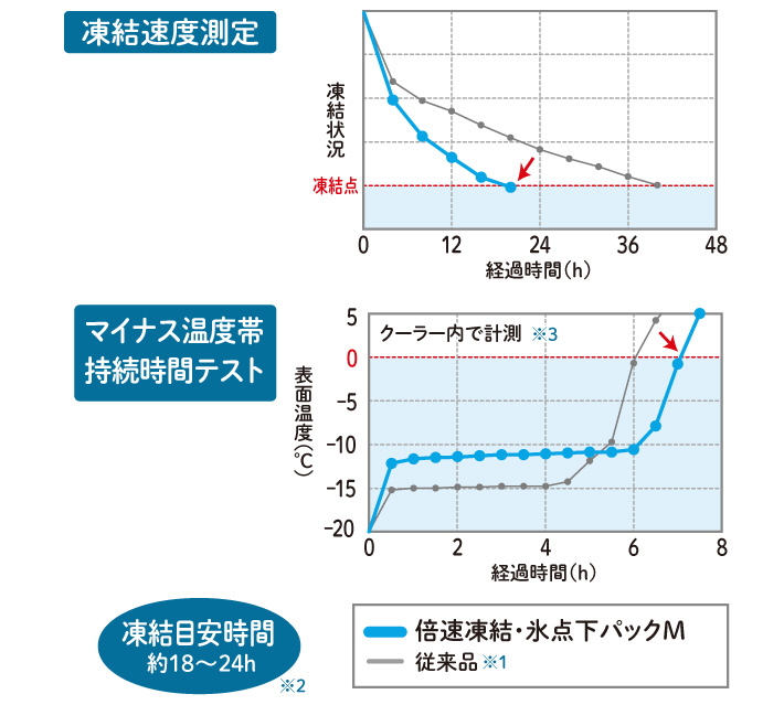 従来の氷点下パック-16℃の約半分の時間で凍結完了!