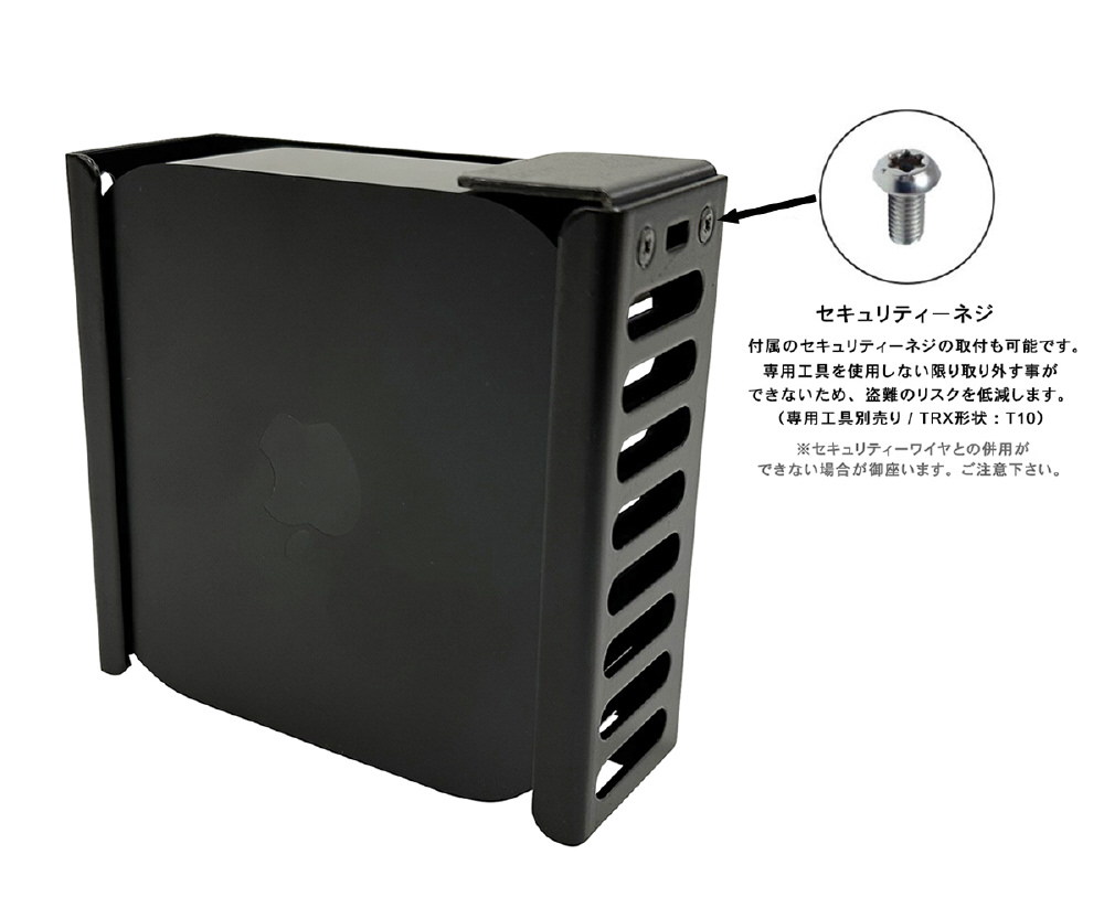セキュリティーネジを付属しており、セキュリティーロック/ワイヤを使用しない場合でも盗難リスクを抑制します。