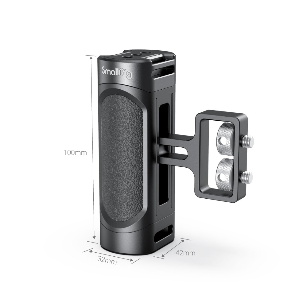 撮影の安定性や利便性などを高めるために設計されています。2本の1/4インチツマミネジを使いカメラケージやプレートなどに固定し、安定性が高いです。また、ツマミネジは六角レンチを使い増し締めができ、更に安定性が高まります。ハンドルの向きや位置などを変えられるため、様々な撮影ニーズに応えられます。