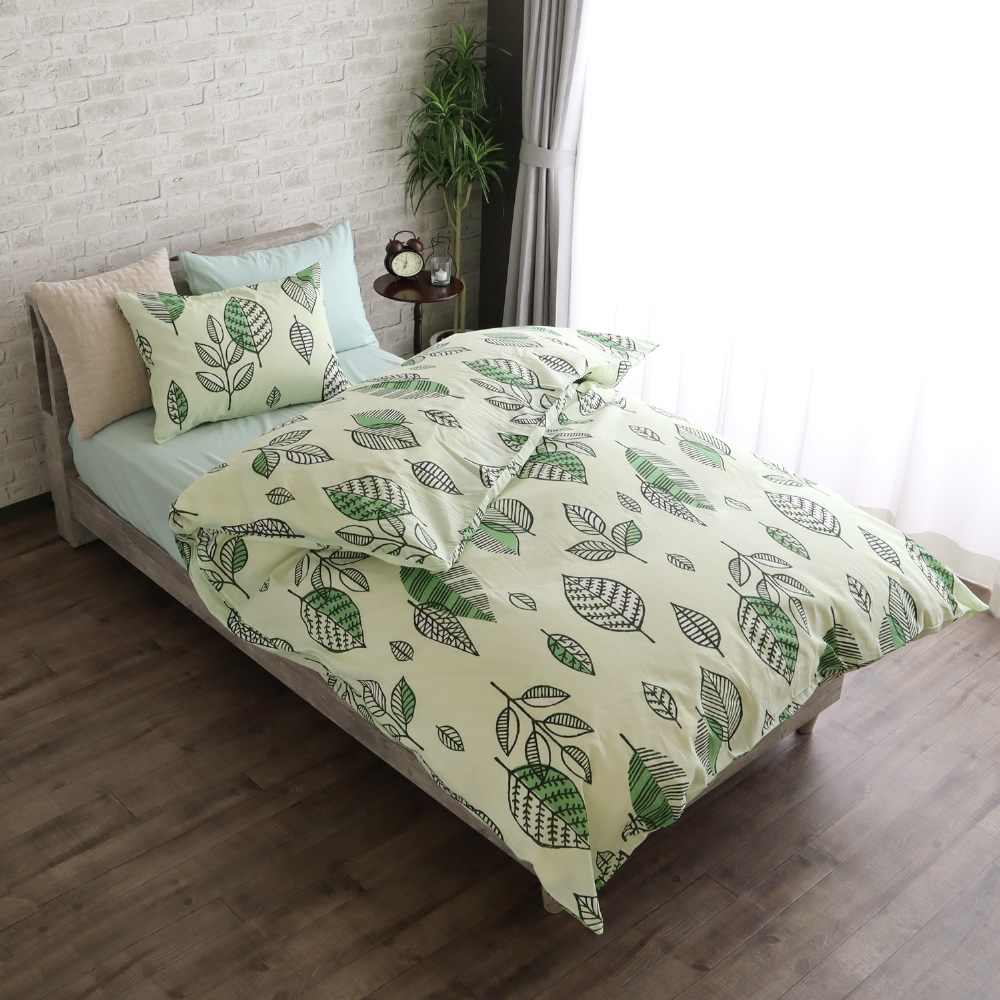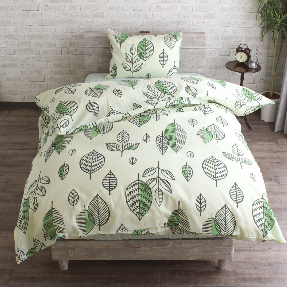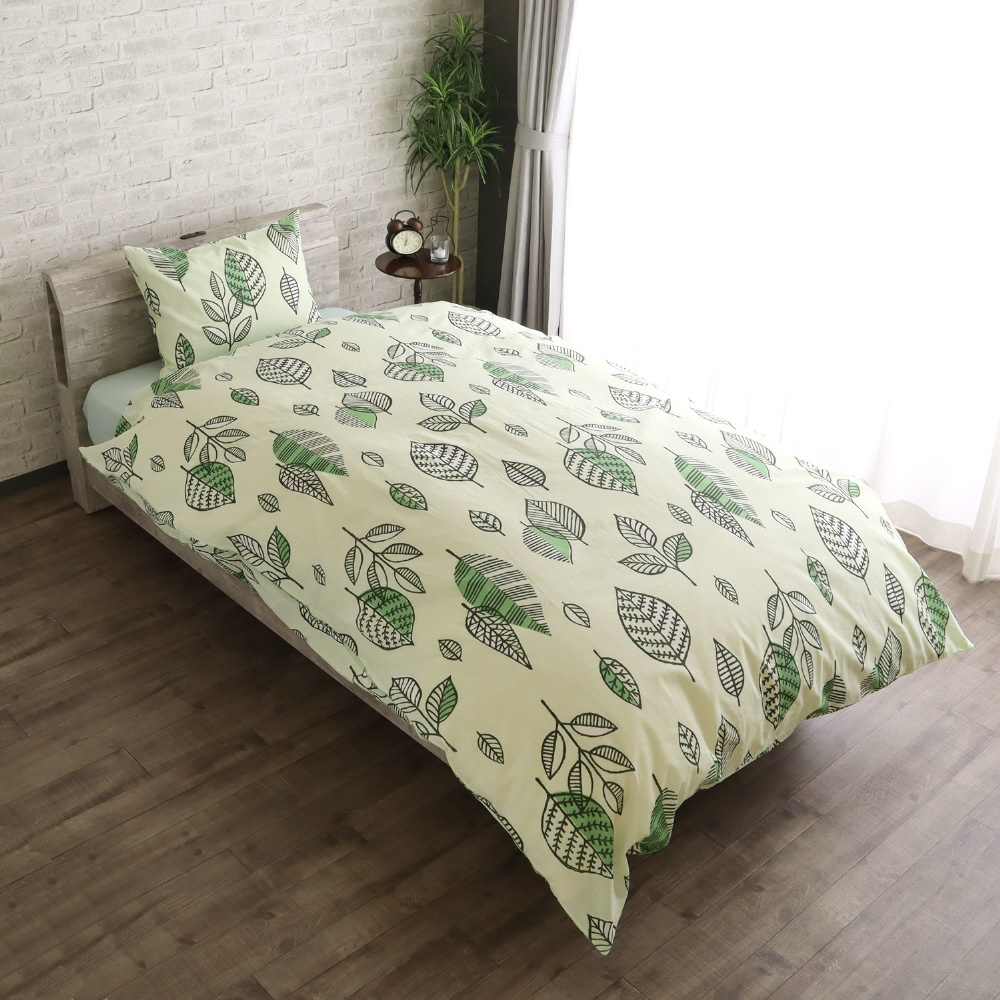 メリーナイト 掛け布団カバー 「ナチュラルリーフ」 グリーン シングルロング 約150×210cm 両サイドファスナー ふとんが入れやすい 綿100% オールシーズン 洗える FF12119-53 グリーン FF12119-53