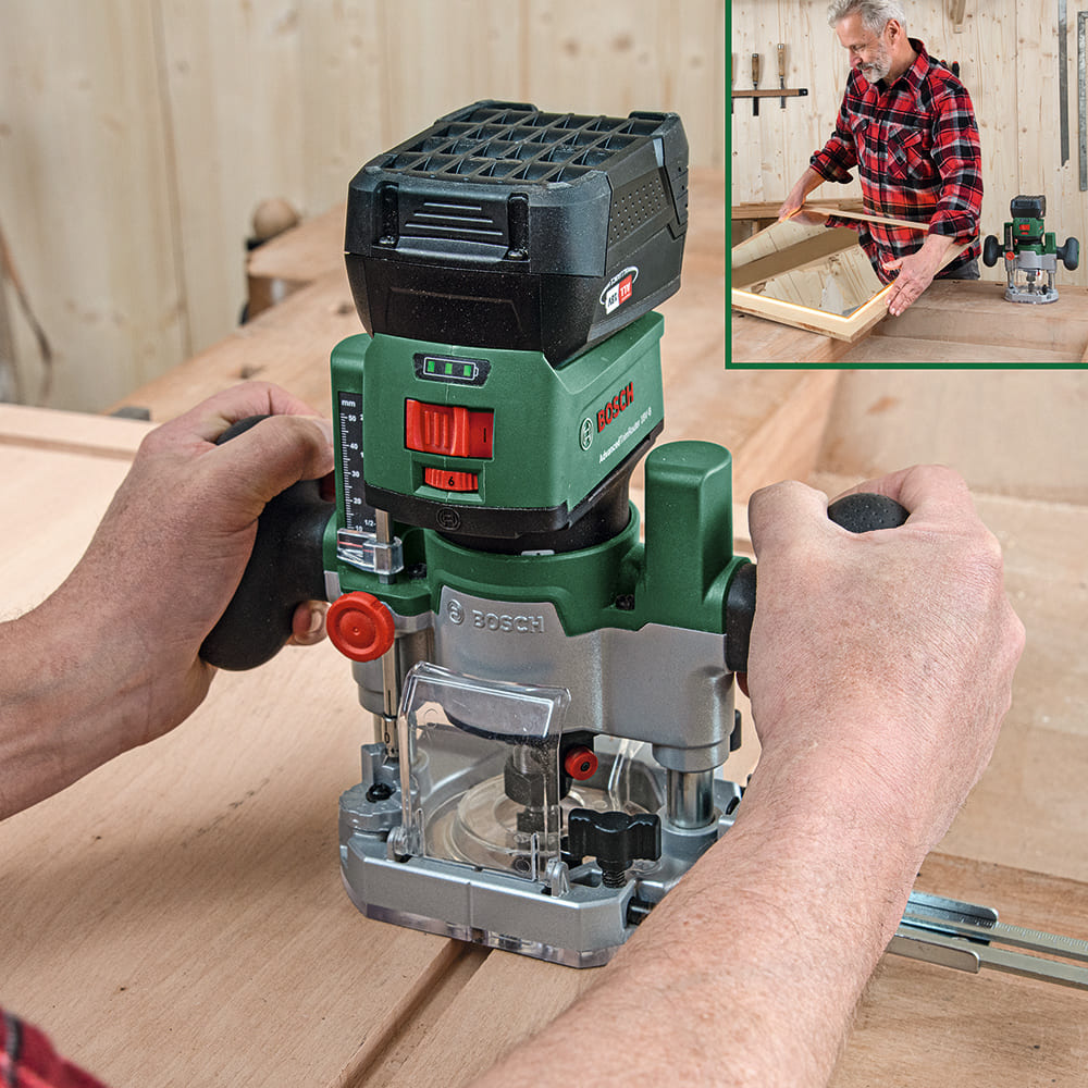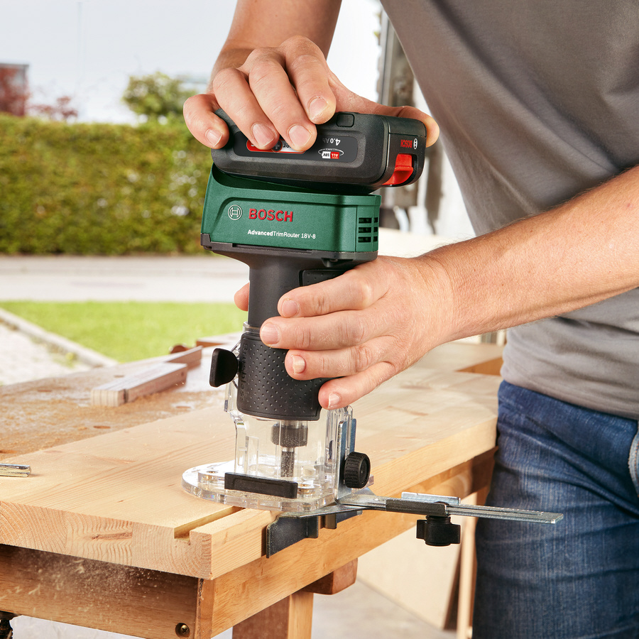 コンパクトでパワフルなコードレストリマーは、溝堀や面取りに力を発揮します。木材、プラスチック、軽量建築材等の彫刻、面取り、溝切り作業に。