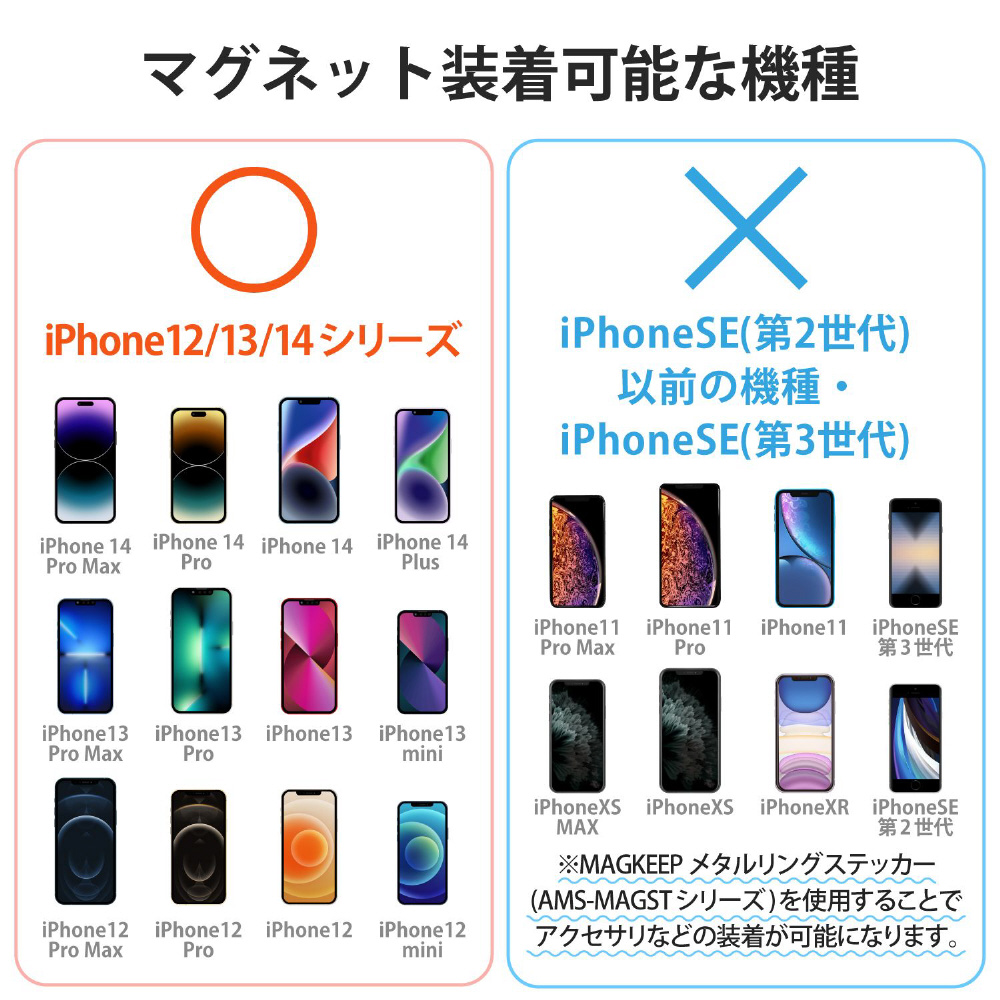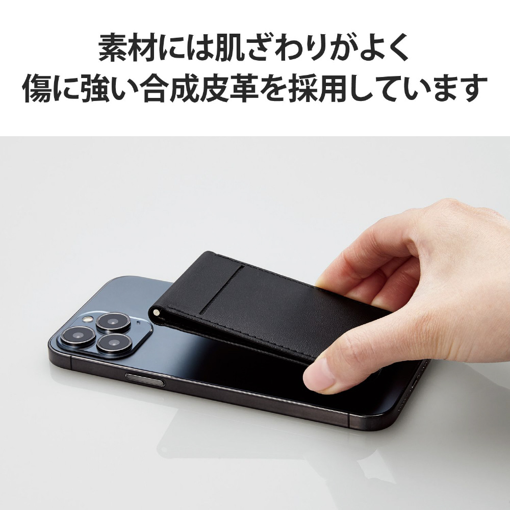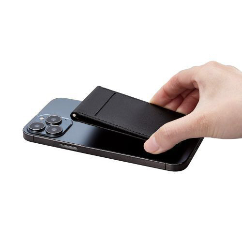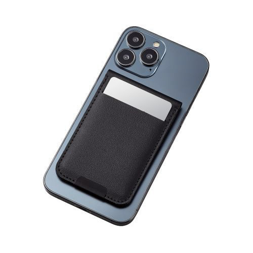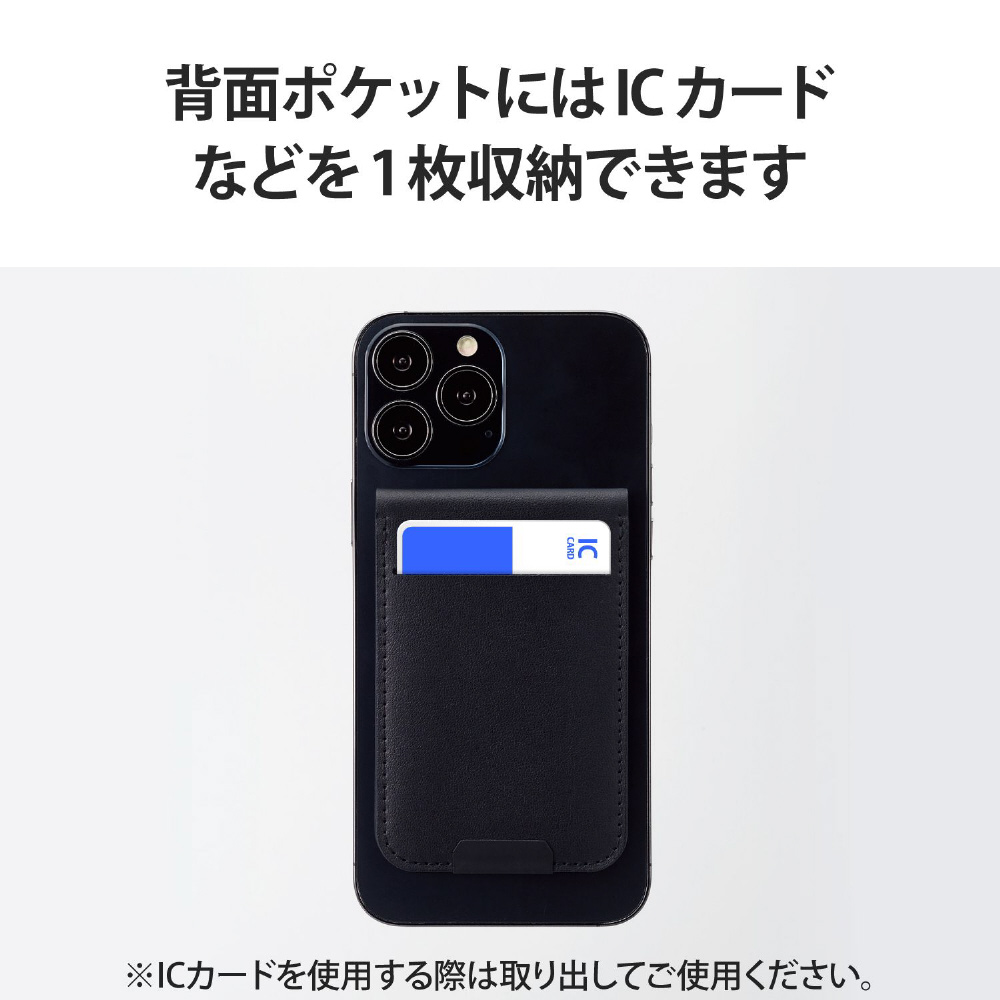 iPhoneにマグネットで取り付けられる、カードポケット付き背面フリーアングルスタンドです。好きな角度で固定できる設計で、アングルを細かく調節ができます。取り付ける方向で縦や横画面のどちらでも使用可能。背面のポケットには交通系ICカードやクレジットカードなどを1枚収納できます。 ※MagSafeに対応しているiPhoneに使用できます。※ICカードを使用する際は取り出してご使用ください。