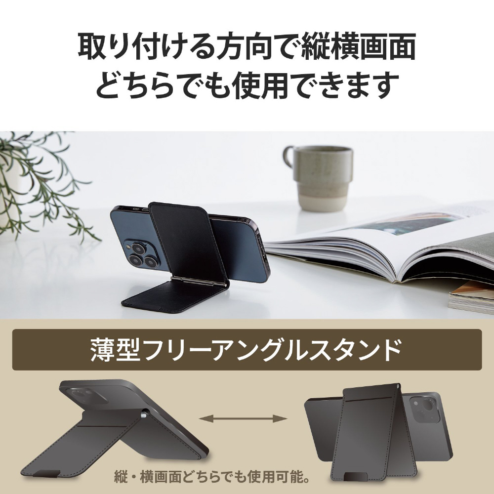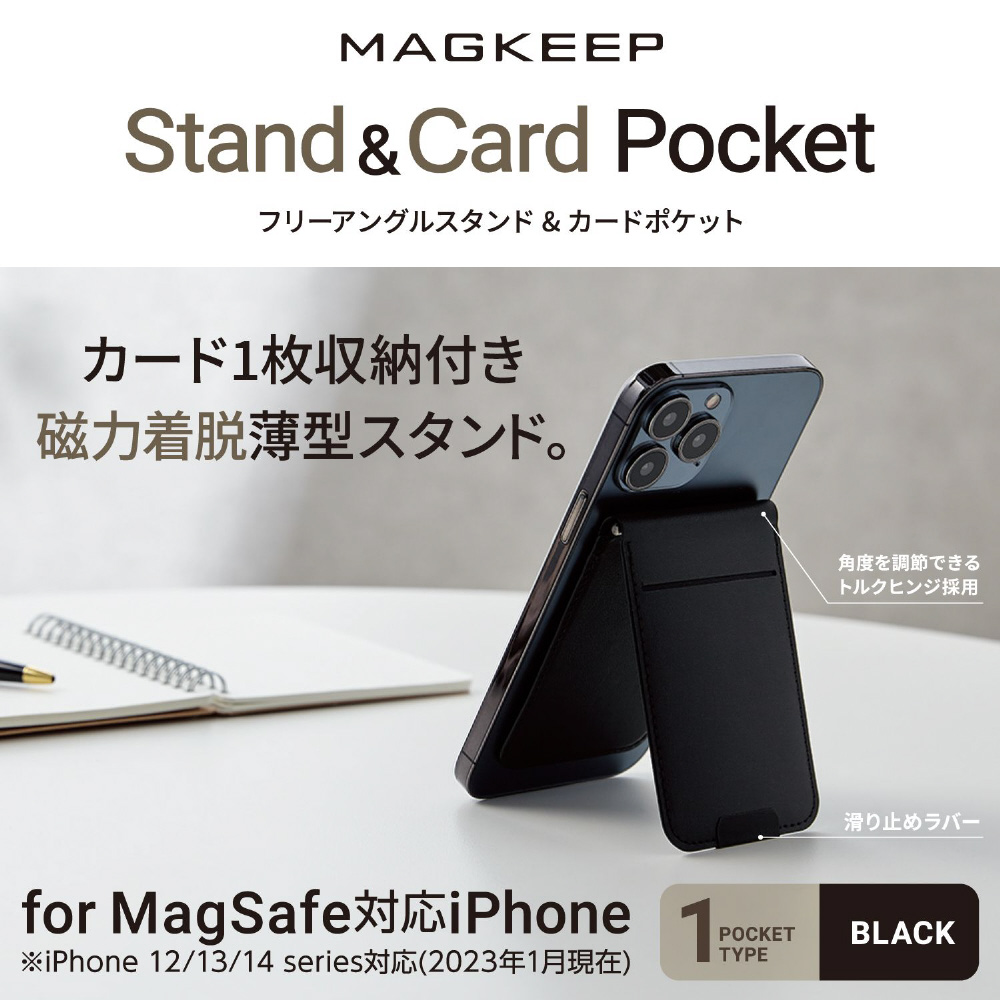 スマホ スタンド MAGKEEP カードポケット フリーアングルスタンド ブラック AMS-BPDSFBK 【852】