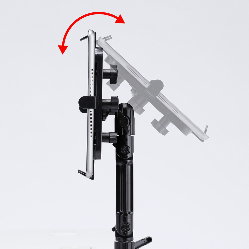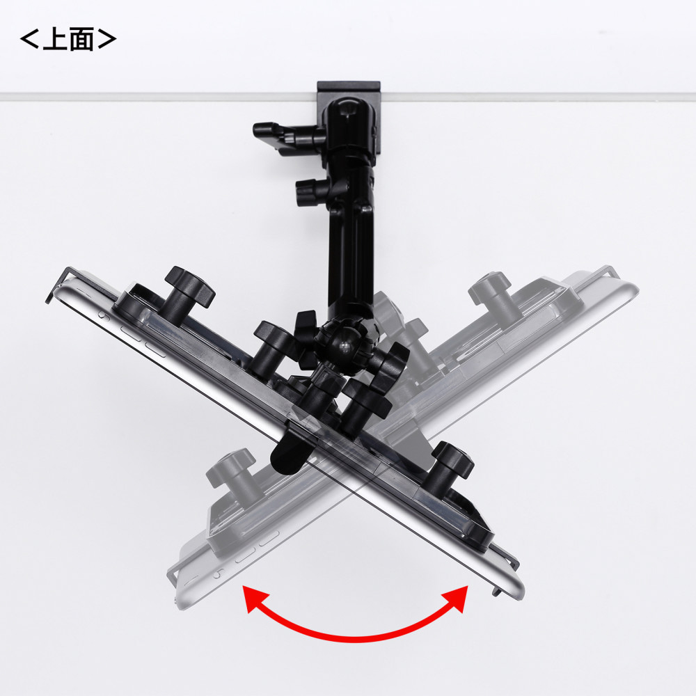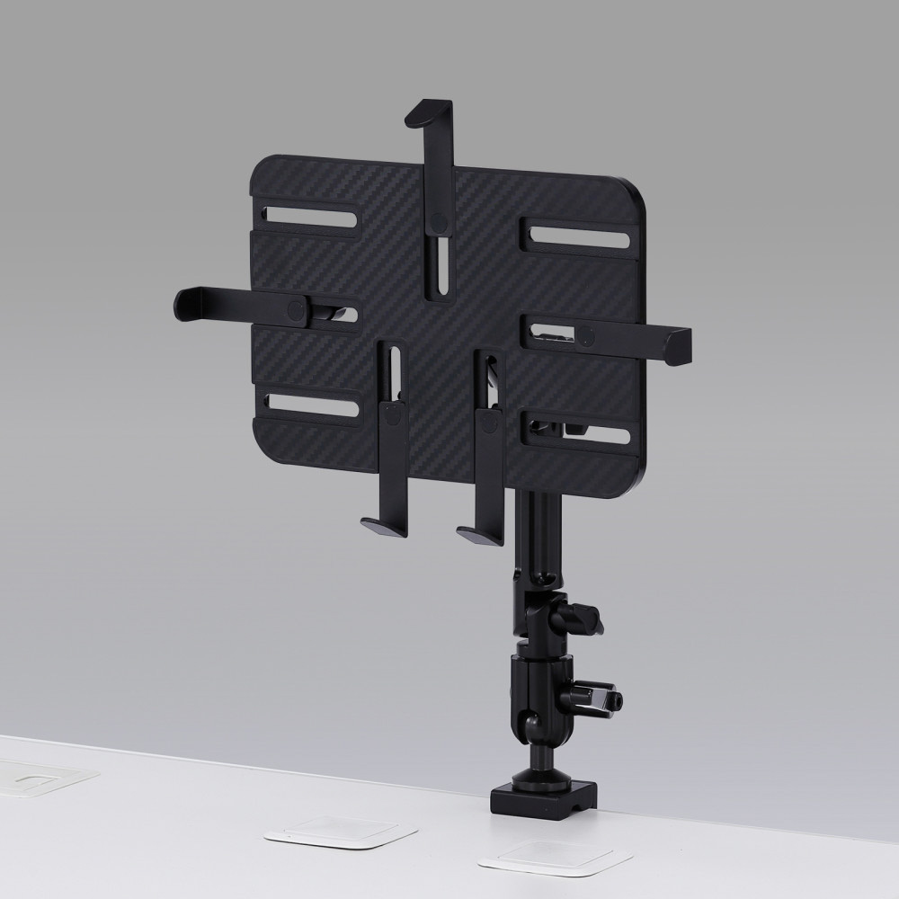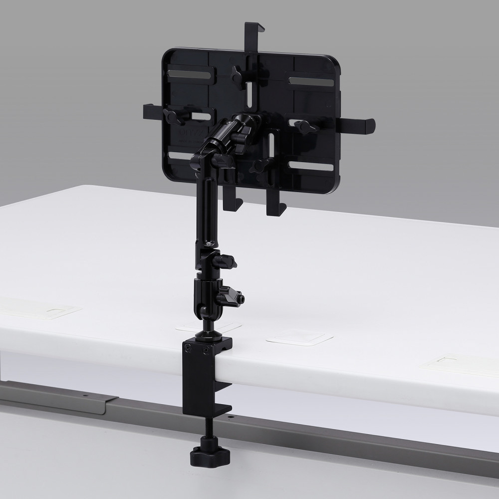 iPad・タブレットを任意の位置で設定できるクランプ式アーム。丸・角パイプに取り付けも可能。7〜11インチ対応。