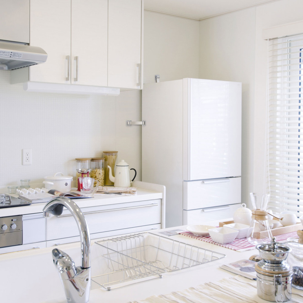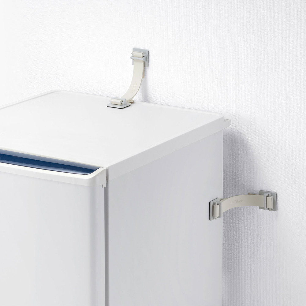 家庭用冷蔵庫の転倒防止!ゴムベルトで衝撃を吸収。