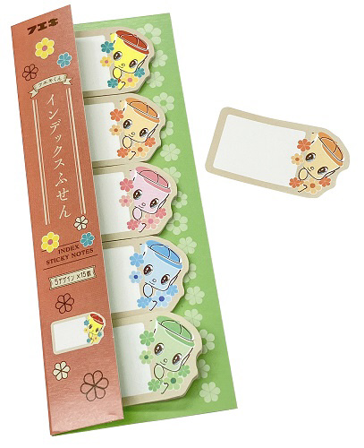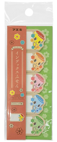 5つのデザインが入ったインデックスふせんです。カバーがついているので保管に便利で、そのまま筆箱に入れて持ち歩けます!フエキくん×フラワー柄です。