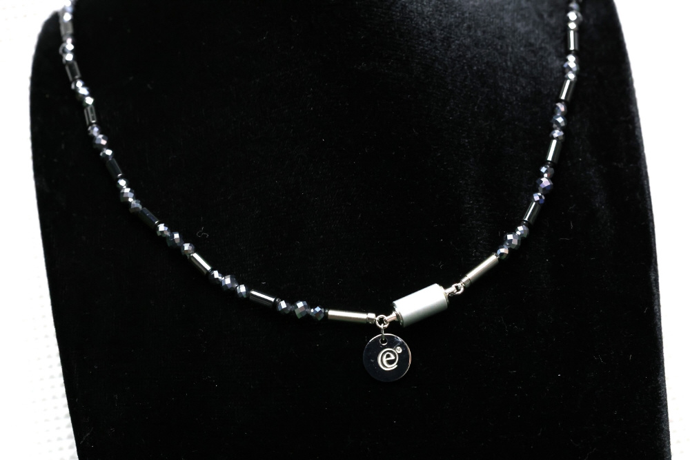 バランスeクリスタル600pw フリーダムシリーズ。ネックレス長さ50cm シルバー色のフェライト磁石とテラヘルツをふんだんに使用し、とても軽くて使用感の良いネックレス。