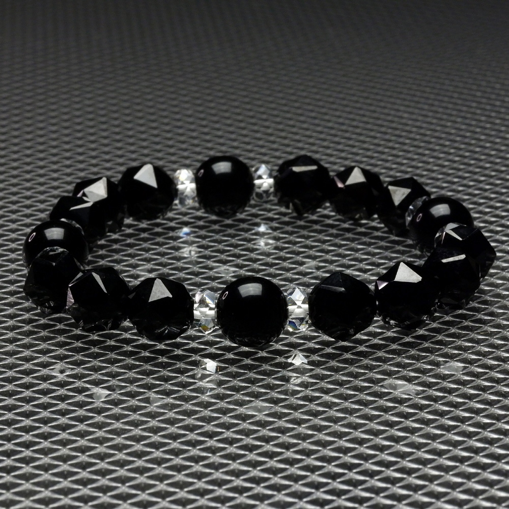 バランスeクリスタル400pw+天然石(ブラックスピネル・クリスタル)で出来たブレスレットです。