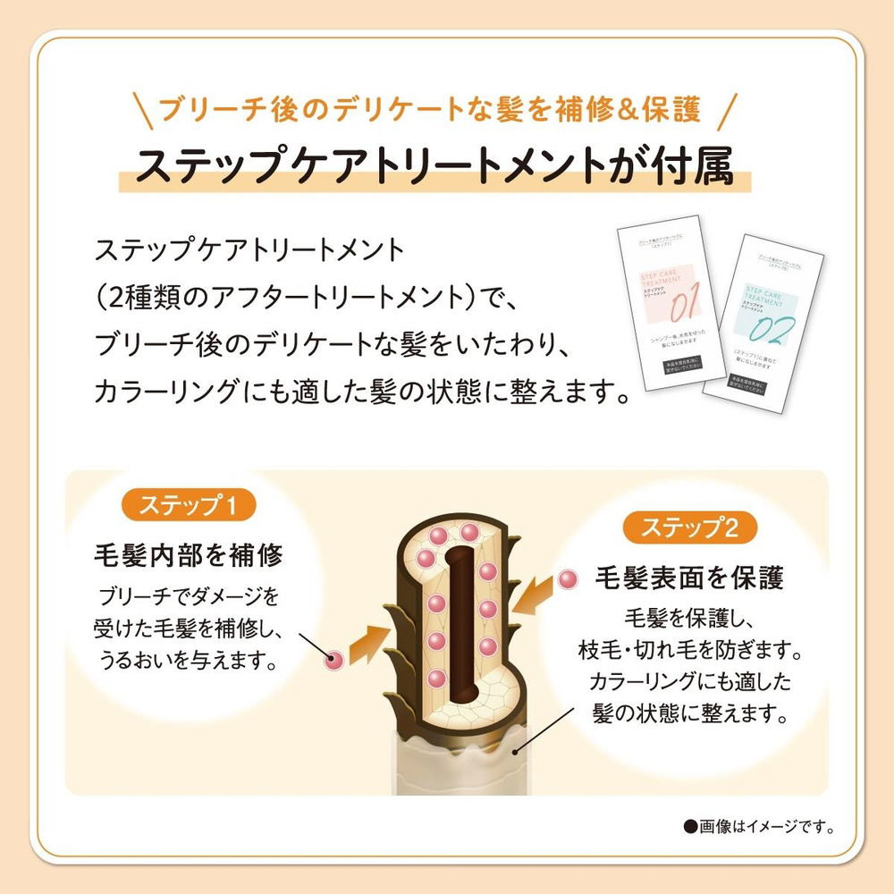 ブリーチ後のデリケートな髪を補修&保護する2ステップのアフタートリートメント付き。