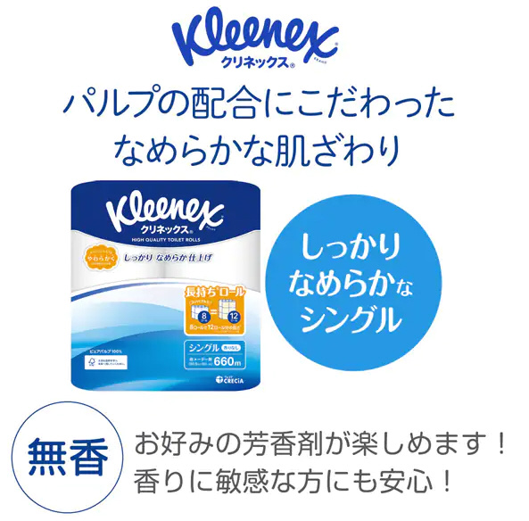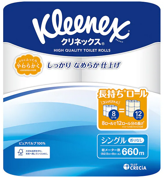 | 商品名 | Kleenex(クリネックス)長持ち 8ロール シングル 82.5m |