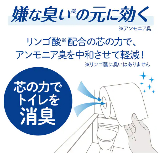・リンゴ酸配合の消臭コアを採用し、トイレのアンモニア臭を中和して軽減。