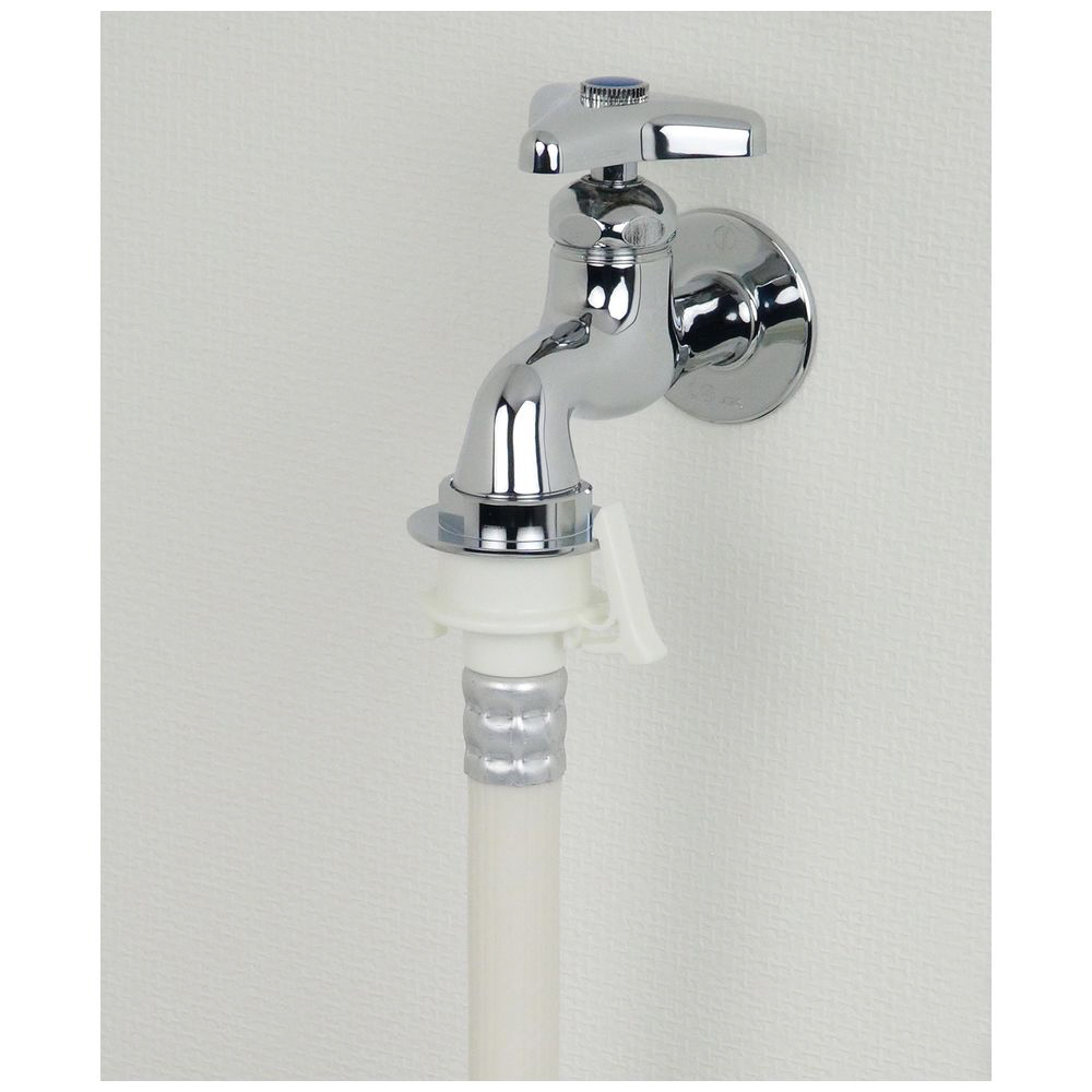 水栓と洗濯機給水ホースをワンタッチで接続できるニップルです。