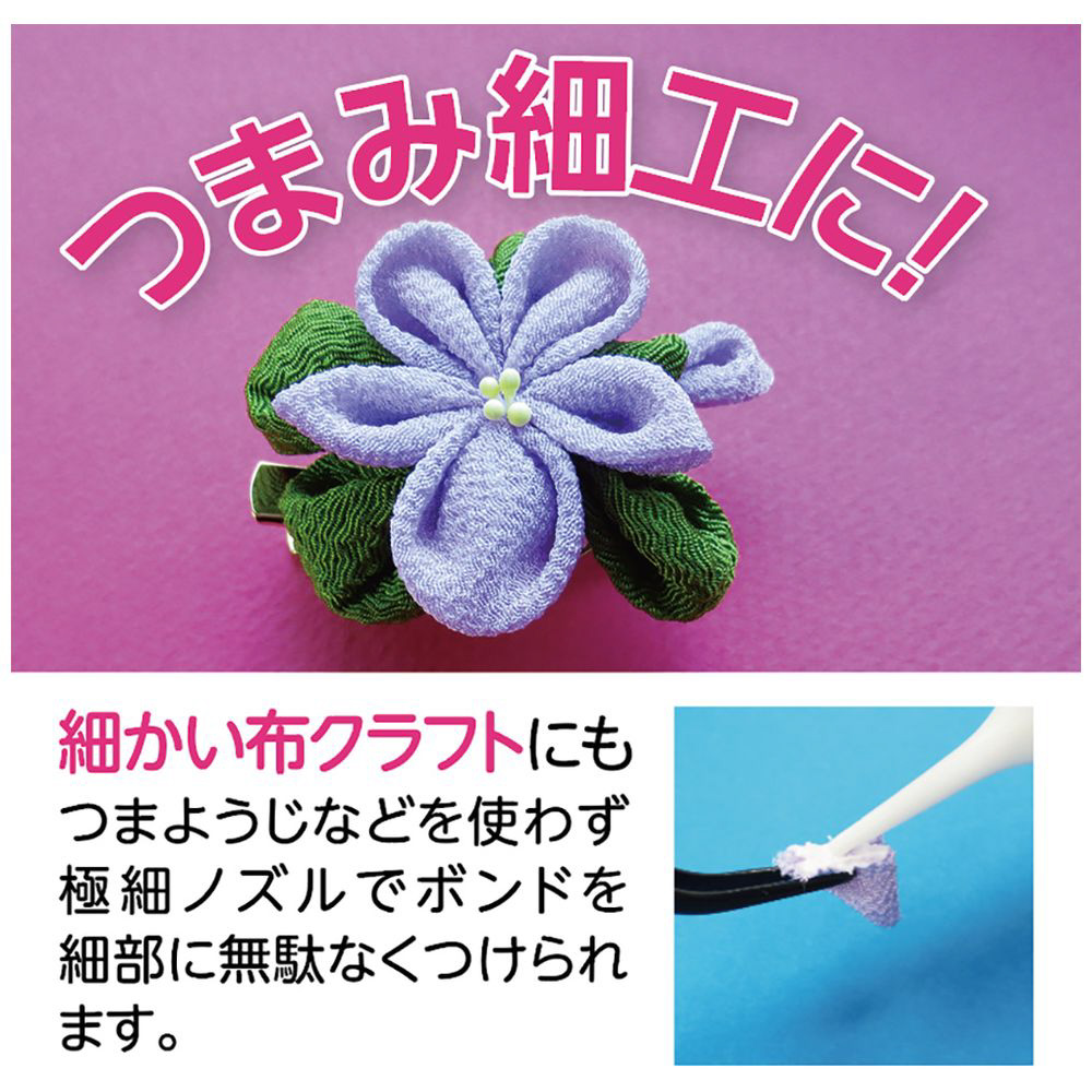 ■つまみ細工のような細かい布クラフトにも、つまようじなどを使わず極細ノズルでボンドを細部に無駄なくつけられます。