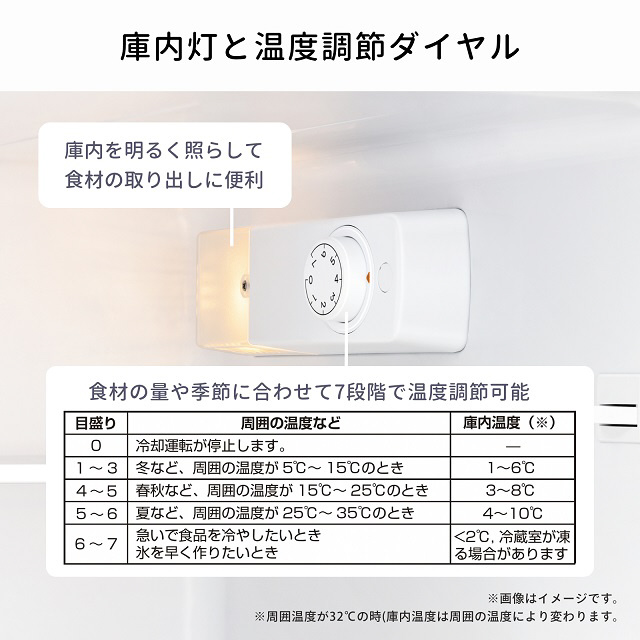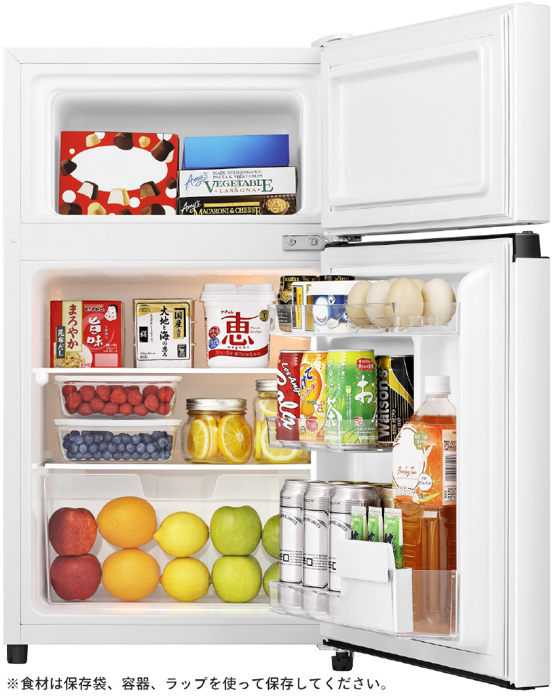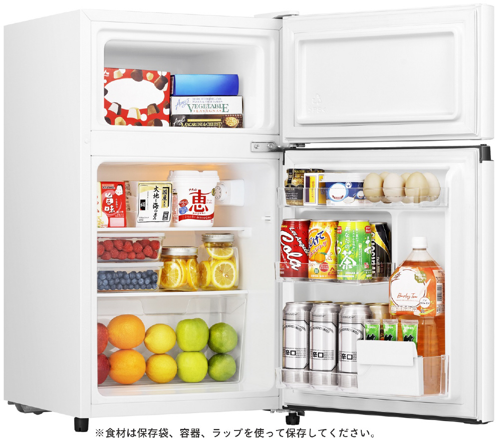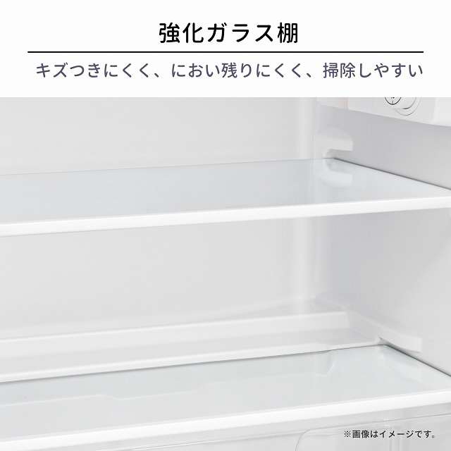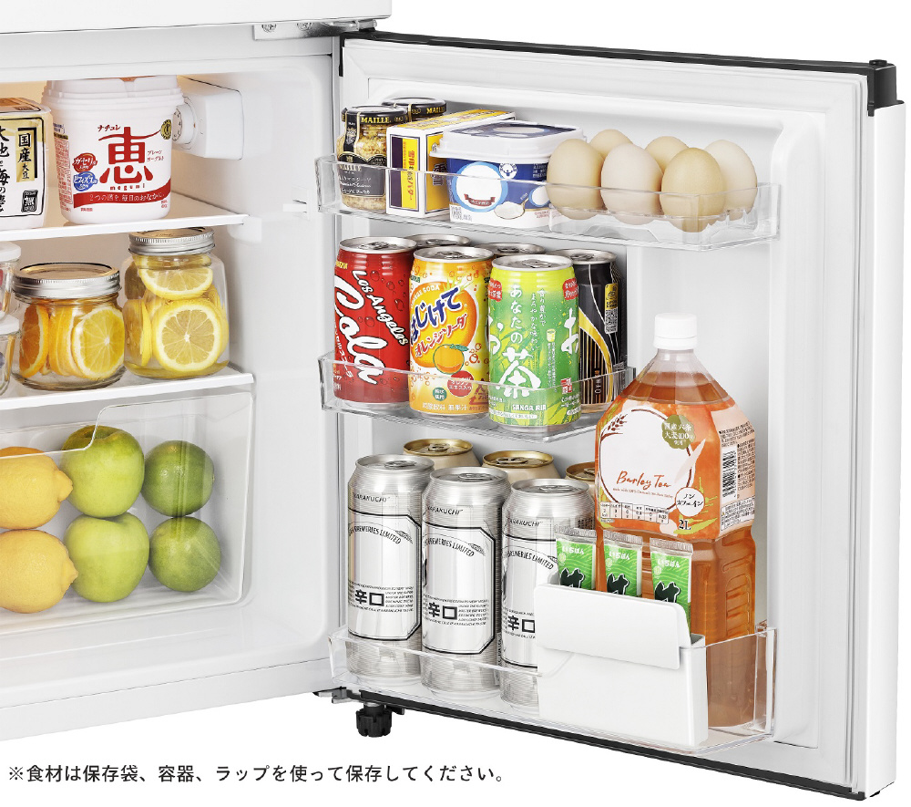 コンパクトで2ドアのモデルをお探しの方におすすめ。3段ドアポケットで収納力抜群!2021年省エネ基準達成率105%なので、電気代も助かります。