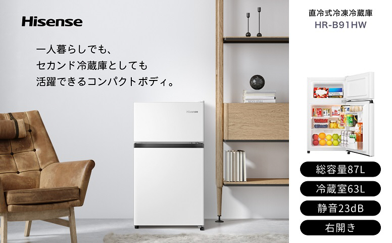 冷蔵庫 ホワイト HR-B91HW [幅47.5cm /87L /2ドア /右開きタイプ /2023年]