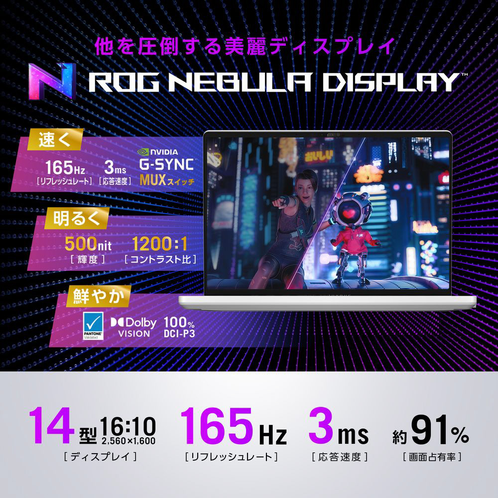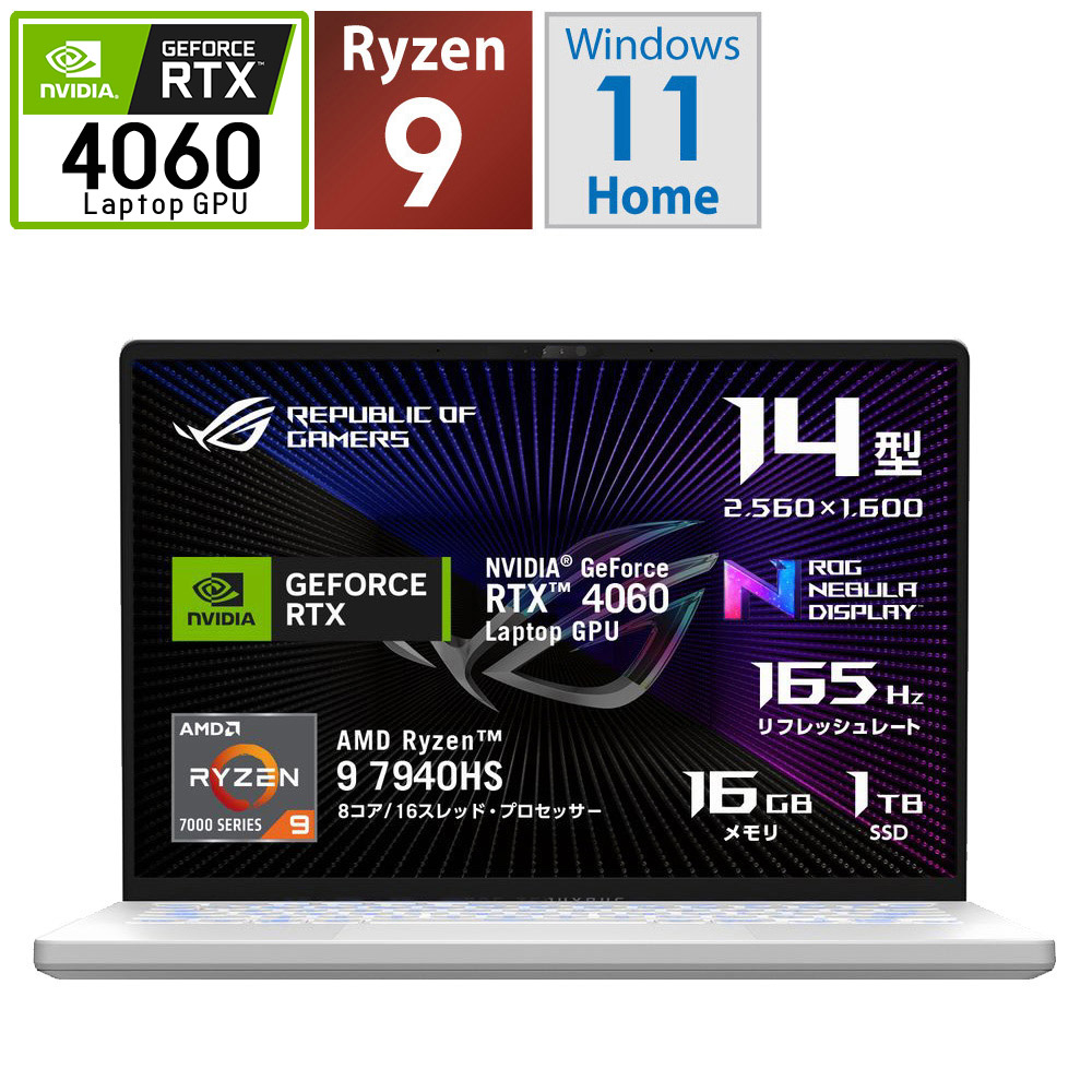 ゲーミングノートパソコン ROG Zephyrus G14 ムーンライトホワイト+AniMe Matrix GA402XV-R9R4060WL[RTX4060] 【sof001】