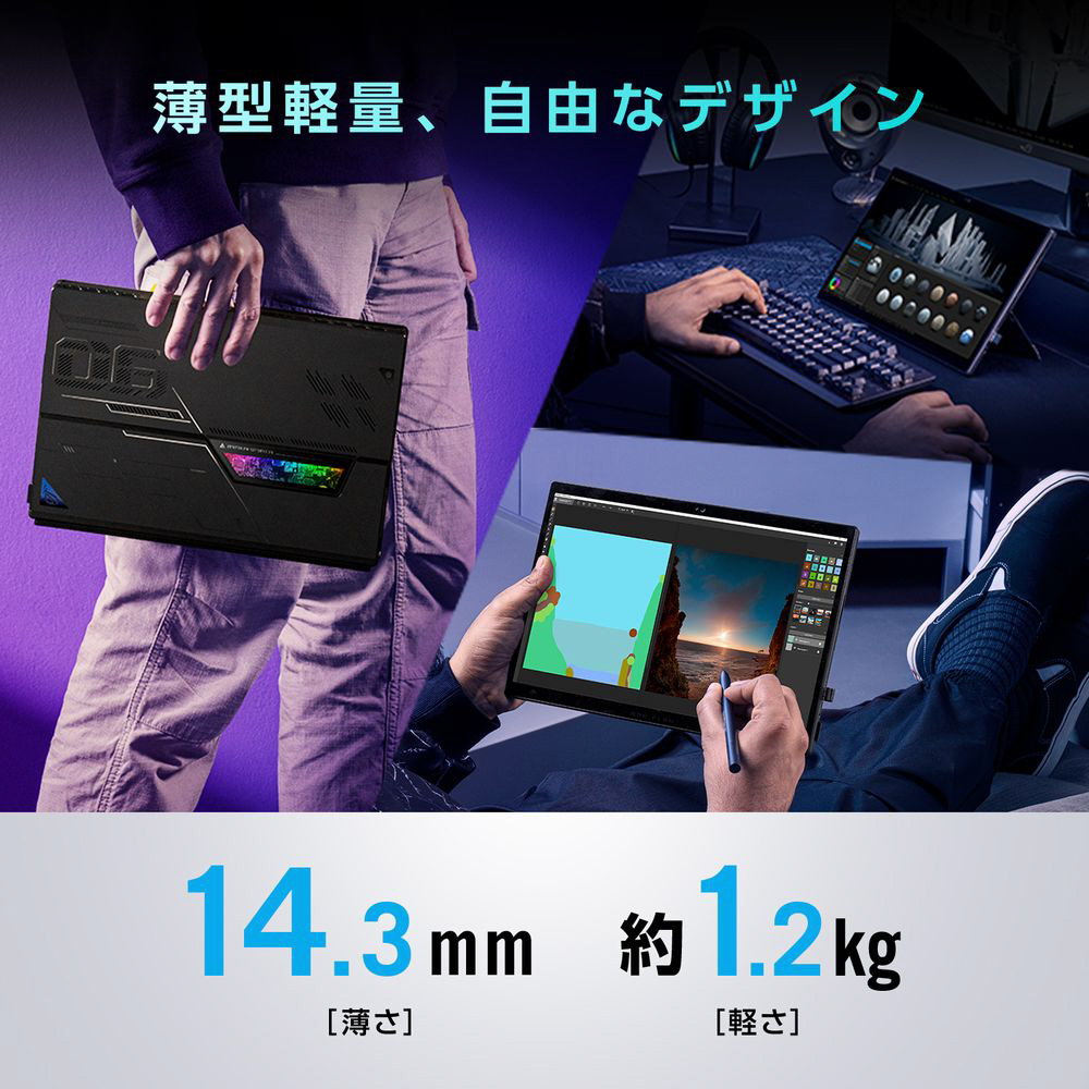 外出先での快適な使用や動画編集などのハードな作業、ゲームをはじめとするエンターテインメント体験での様々なシーンで活躍します。