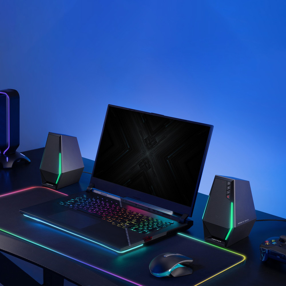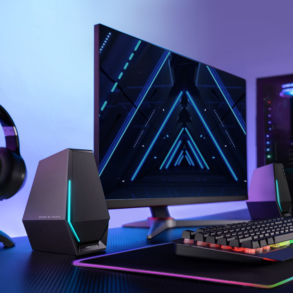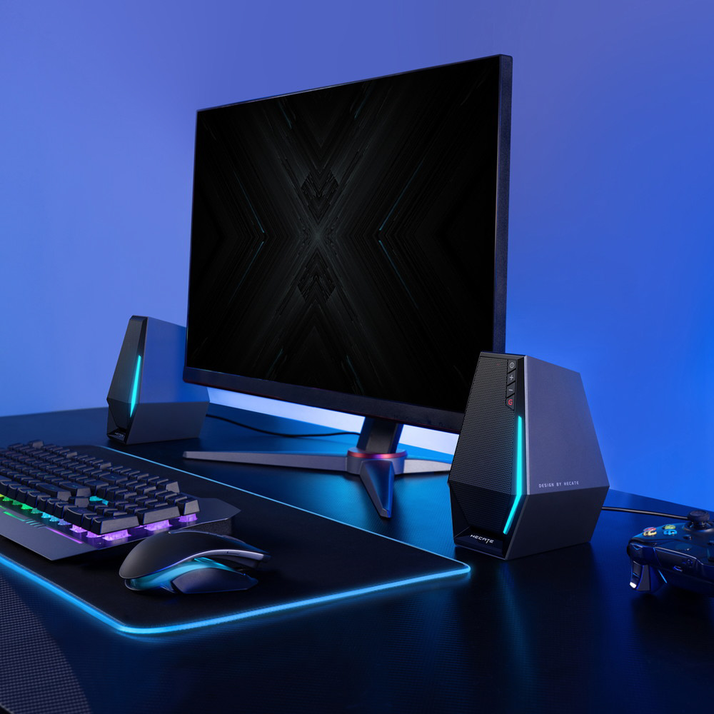 G1500はEdifierによるゲーミングシリーズ「HECATE(へケート)」のゲーミングスピーカーです。合計5W出力の2.5インチ (約6.35cm)フルレンジスピーカーで、様々なLEDライトによる演出がゲームの臨場感を盛り上げます。