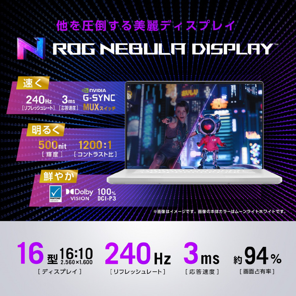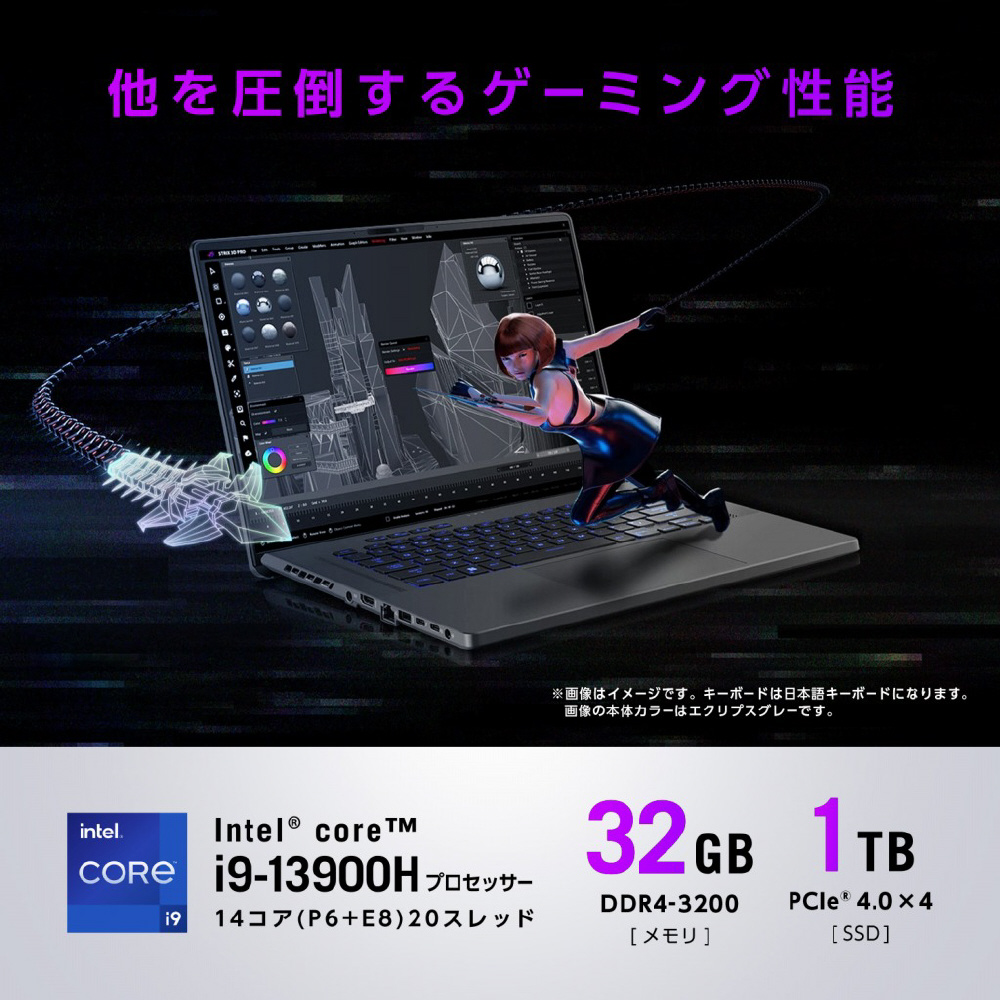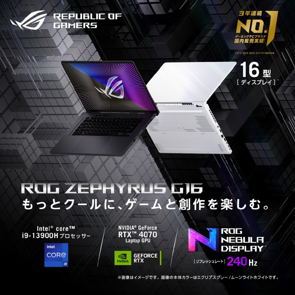 GU603VI-I9R4070W ゲーミングノートパソコン ROG Zephyrus G16 ムーンライトホワイト [16.0型 /Windows11 Home /intel Core i9 /メモリ:32GB /SSD:1TB /日本語版キーボード /2023年3月モデル] 【sof001】