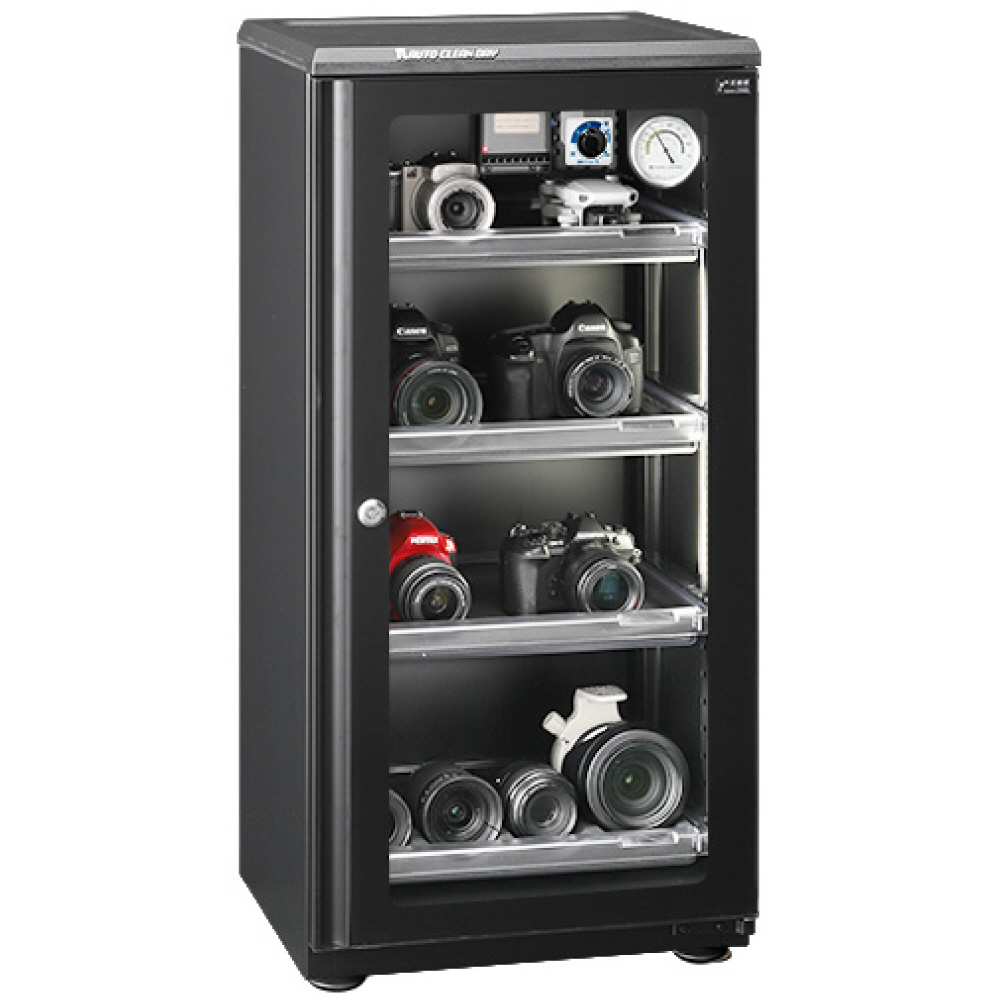 オートクリーンドライは光触媒機構の電子ドライユニット を搭載。庫内の湿度を下げるのはもちろん、光触媒シートに常時 可視光 LED を照射することで、消臭、抗菌、防カビ作用 が連続して行われ、庫内をクリーンな状態に保ちます。庫内湿度を30%〜50%を任意に設定可能でき、レンズのカビと電子部品の劣化防止にメンテナンスフリーで安定した除湿性能を発揮する全自動防湿庫。ユニットは5年保証。