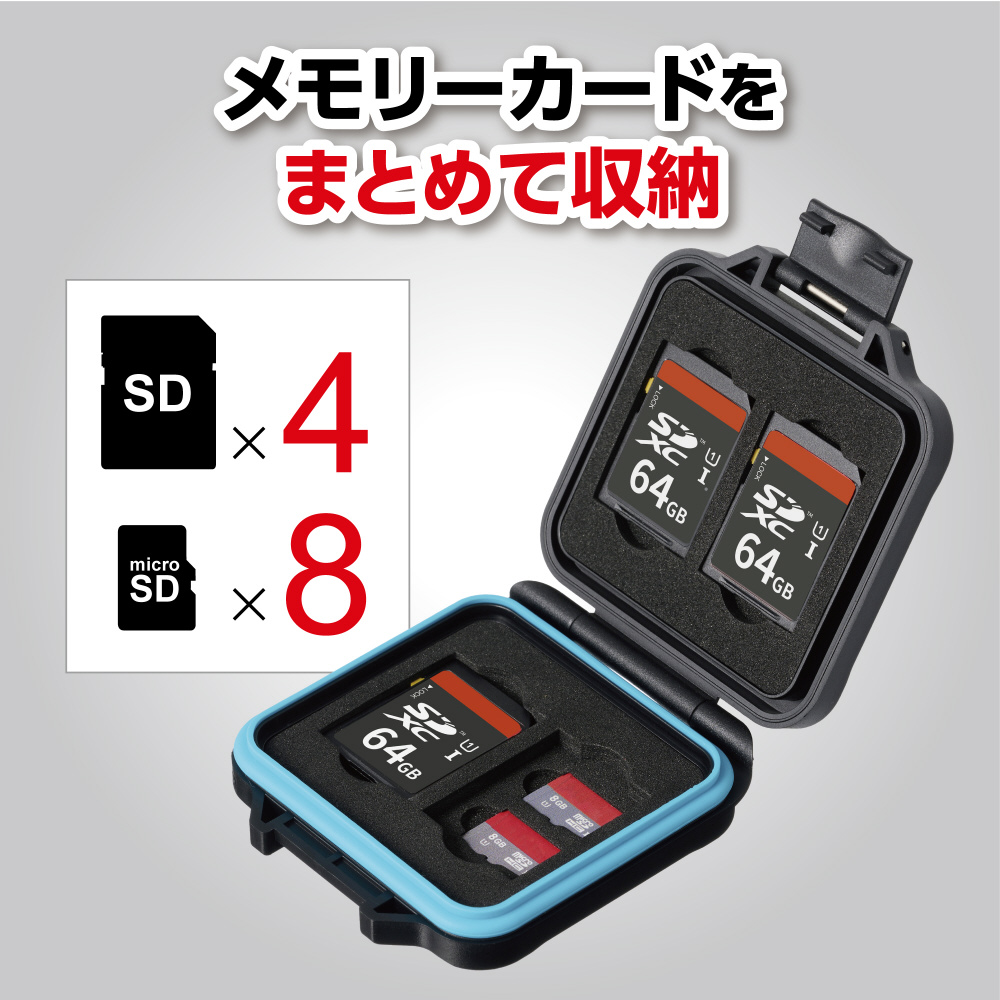 SDカード4枚とmicroSDカード8枚を収納できる耐衝撃メモリーカードケース