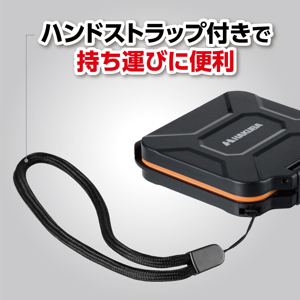 約40g と軽量でコンパクト。着脱可能なハンドストラップ付きで、持ち運びに便利です。