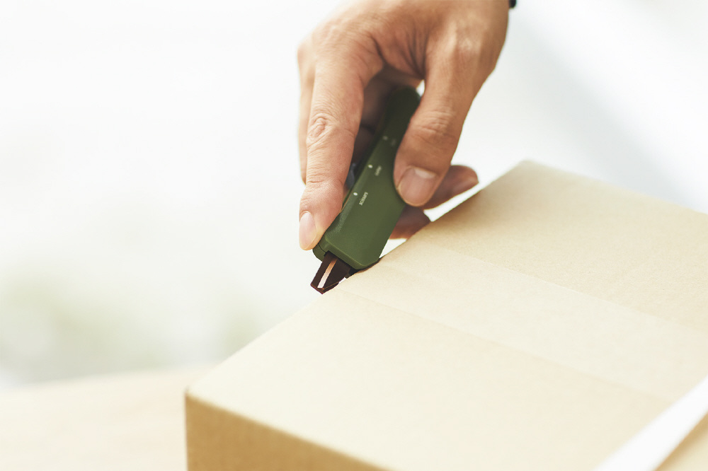 ●「開梱カッターモード」は、約3mmの刃によって、ハサミの刃を閉じたまま段ボールの開梱ができます。