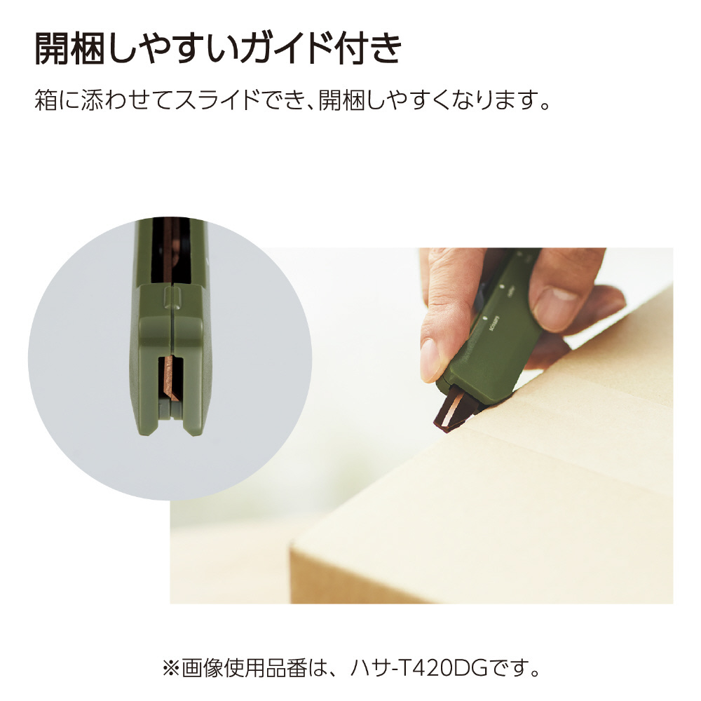 ●ケース前部のガイドを段ボールに沿わせることで、開梱がしやすくなります。