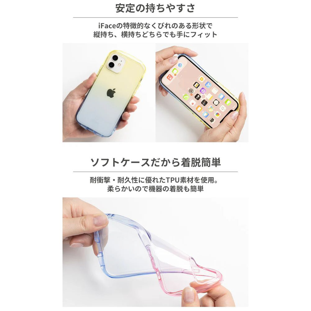 iPhoneの色を透かして自分なりのグラデーションカラーを楽しむのもよし、iFaceのインナーシート(1枚推奨)を挟んでアレンジしてもOK。フチの透け感が可愛いので、淡い色の機器はもちろん、濃い色の機器でも楽しめます。