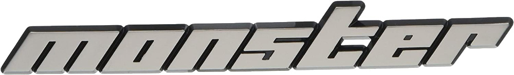 モンスターのロゴの立体エンブレムです。サイド面はブラックで、表面のメッキが際立ちます。