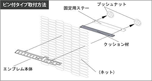 メッシュグリル等に取り付けやすい、ピン付きタイプ。取付用部品(プッシュナット、固定用ステー)付属。