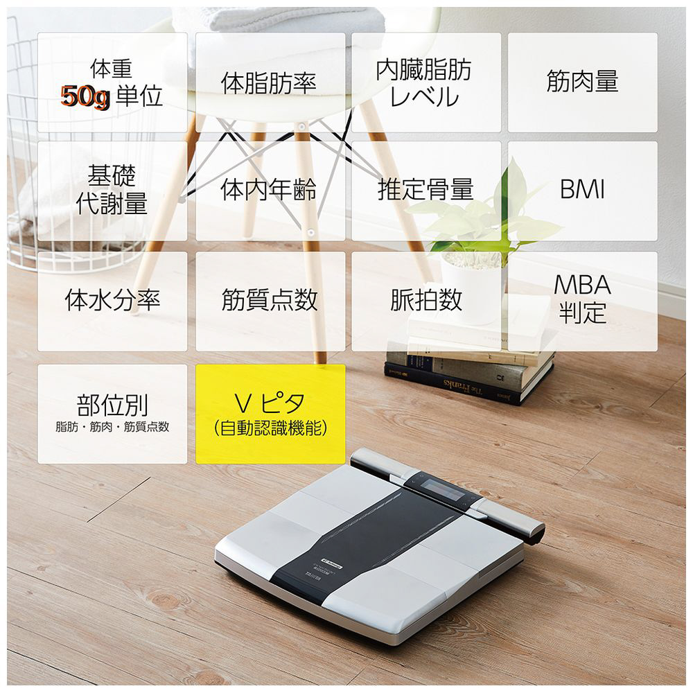 タニタの最先端技術が結集したハイスペックモデル。「TANITA 4C Technology」を搭載し、ありとあらゆる体組成データを収集。