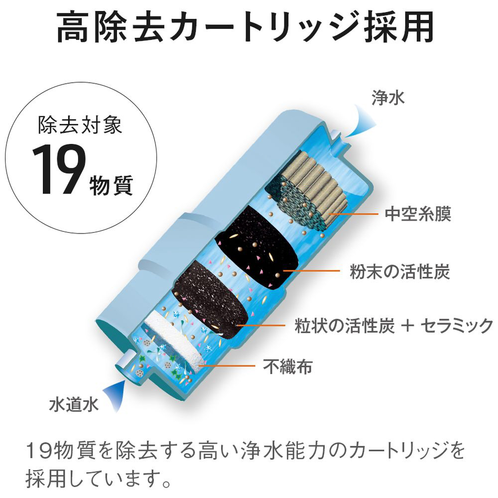 ・直結型浄水器に比べて除去能力アップ※1、安心して使える