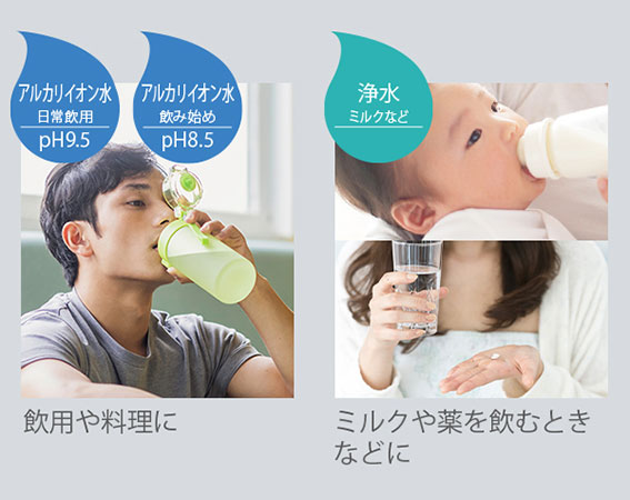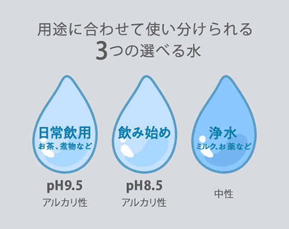 きれいに浄水した水を電気分解してつくられる、胃腸にいい水。