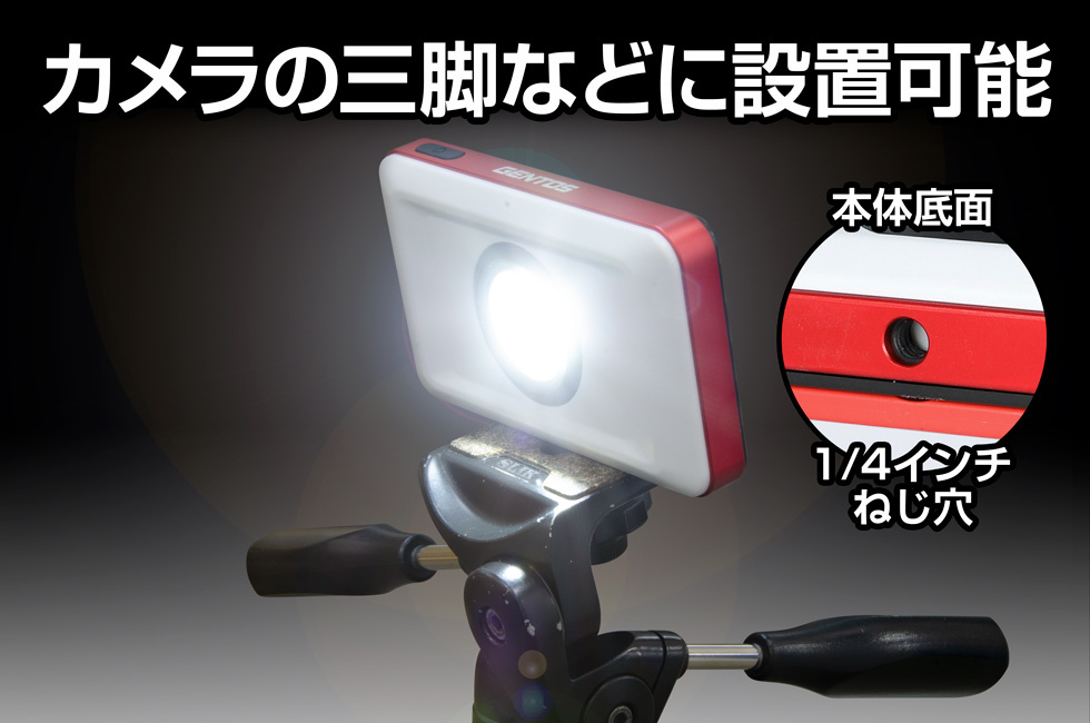 1/4インチネジに対応したカメラ用三脚などに取り付け可能。※形状によっては取り付けできない場合があります。