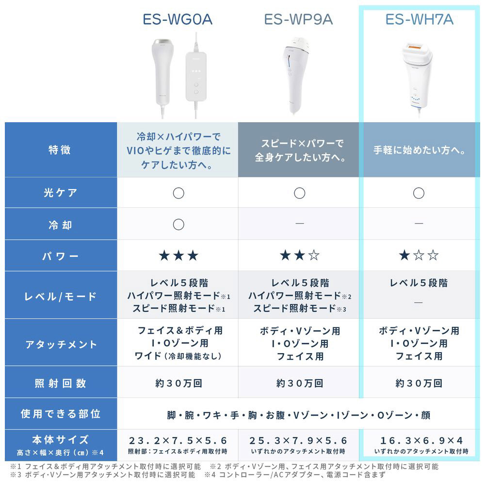 | 商品名 | ES-WH7A-W 光美容器 スムースエピ ホワイト [フラッシュ式 /AC100V-240V] |