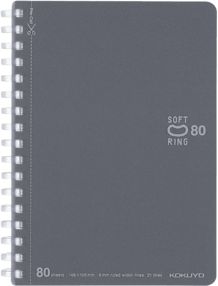 | 商品名 | ソフトリングノート(カラフル) ダークグレー SV348BT-DM [B6 /6mm(B罫) /ドット入り罫線] |